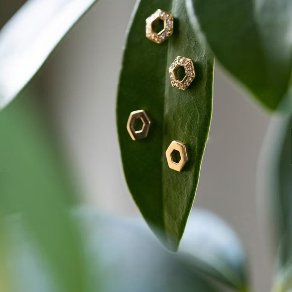 - Beekeeper系列珠寶的靈感來自世界上最重要的傳粉者及其蜂巢的神聖幾何形狀