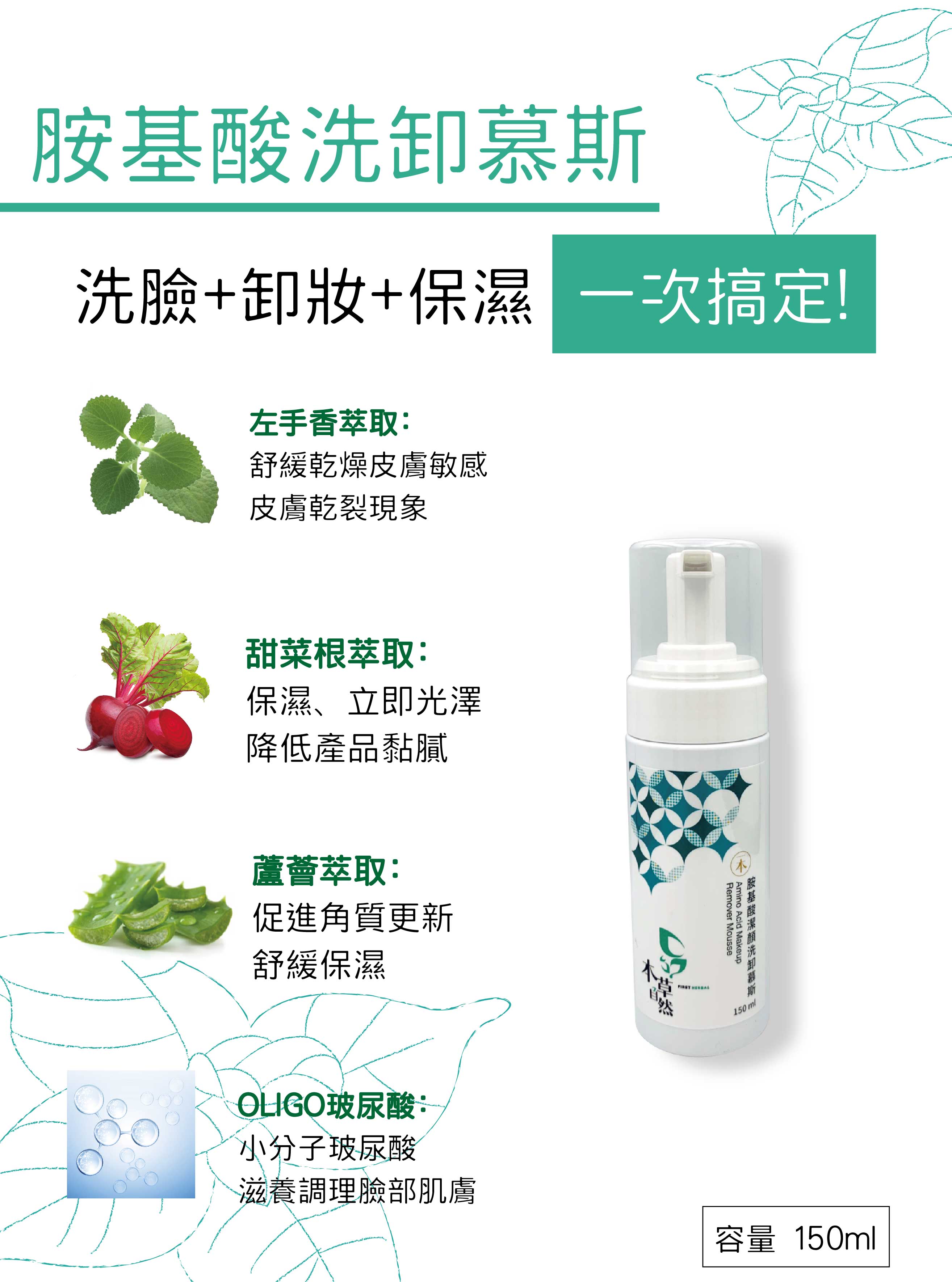 (三件組)【本草自然】胺基酸潔顏洗卸慕斯 150ml✿70G008
