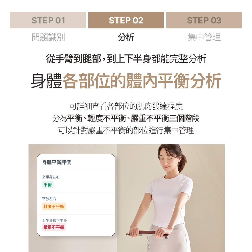 ●專利平衡性偵測,專屬App隨行教練,飲食運動建議一次到位