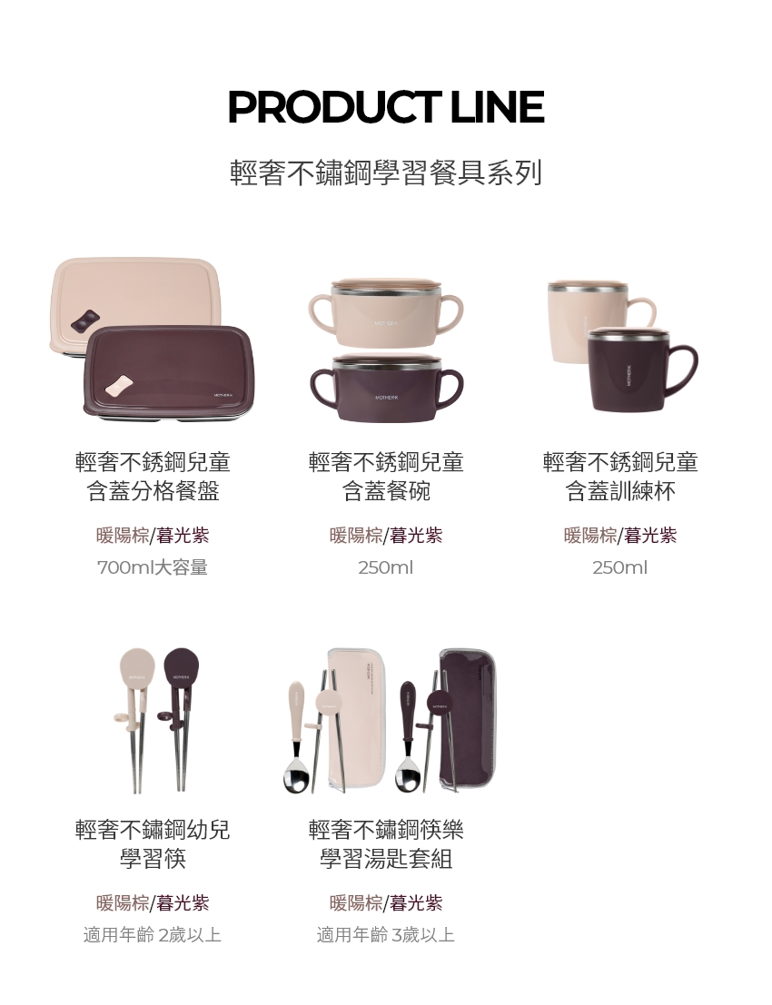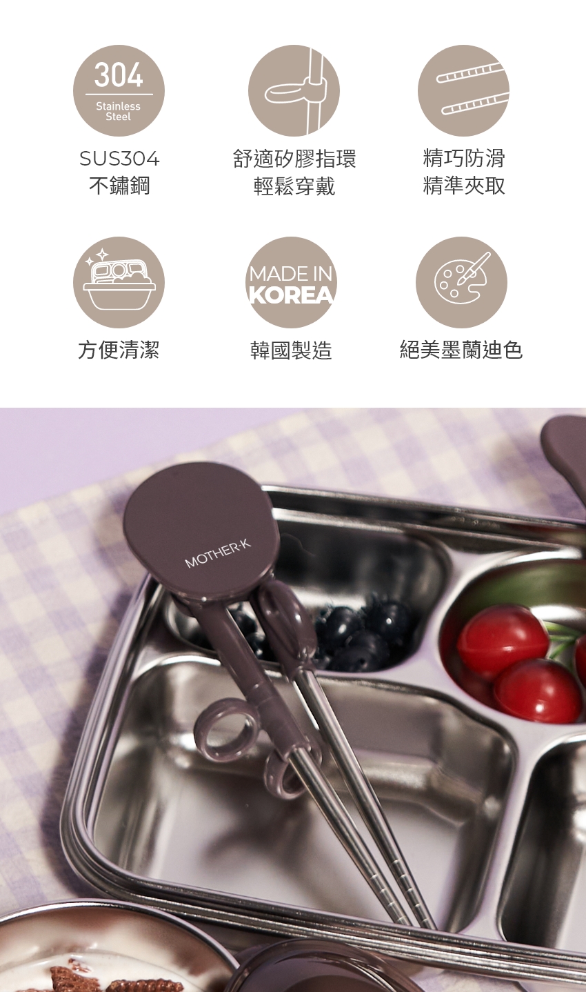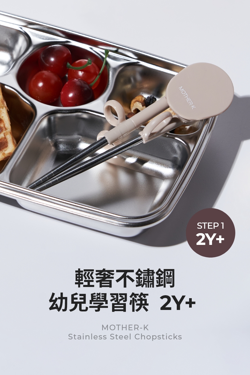 【MOTHER-K】★大寶寶獨立吃飯組(不鏽鋼分格含蓋兒童餐盤 輕奢不鏽鋼不鏽鋼學習筷 輕奢不鏽鋼不鏽鋼餐碗)