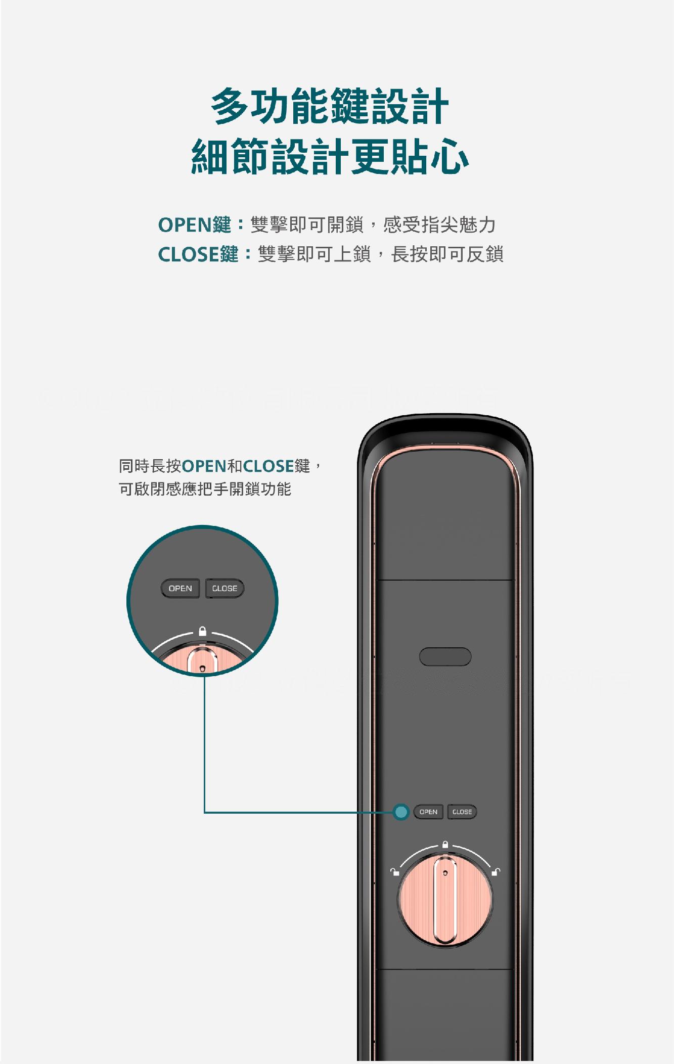 -多功能按鍵,設計更貼心 具備OPEN/CLOSE鍵,開門/關門方式更多元。