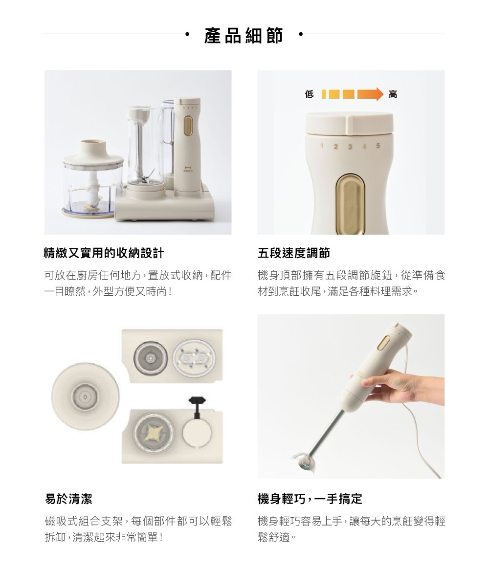 【BRUNO】多合一手持攪拌調理組(杏子灰) BOE096-GRG