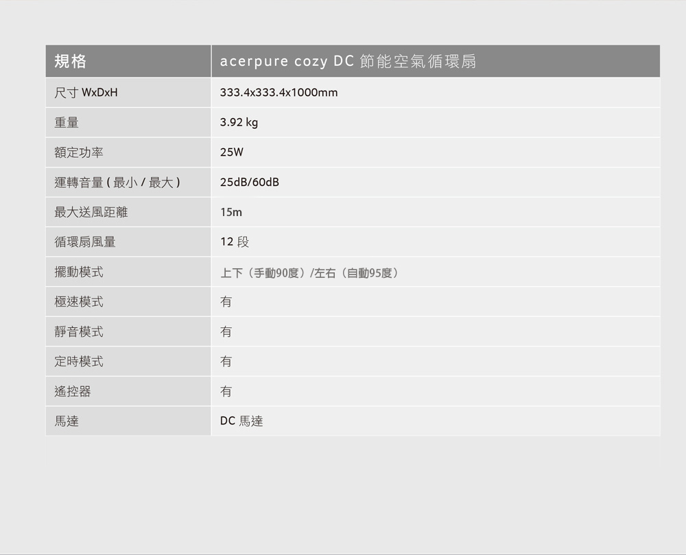 【acerpure】cozy DC節能空氣循環扇 AF551-20W★80B010