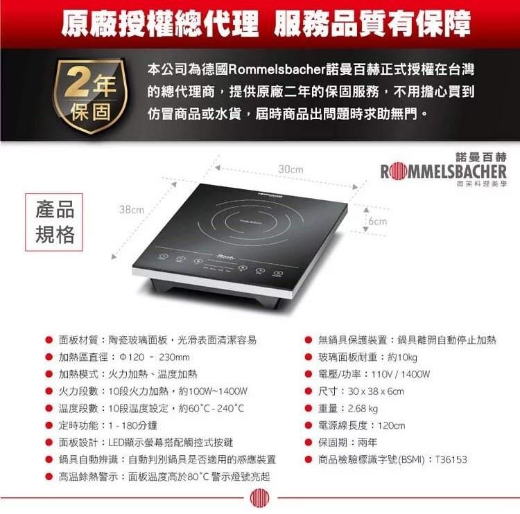 德國 ROMMELSBACHER 諾曼百赫 IH雙模式電磁感應爐 CT2010★80B010