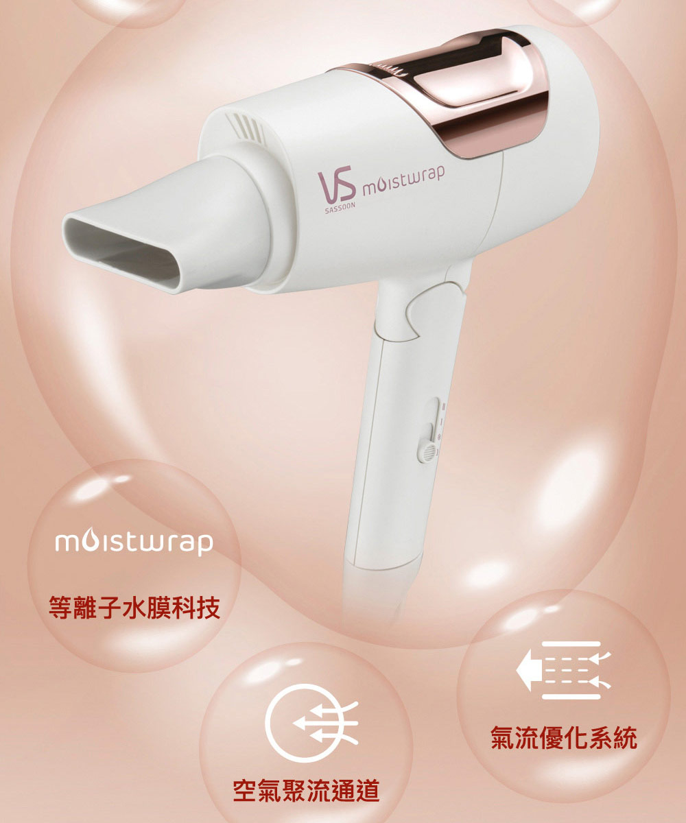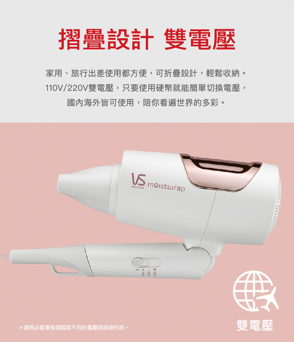 VS 沙宣 等離子水膜雙電壓摺疊吹風機白