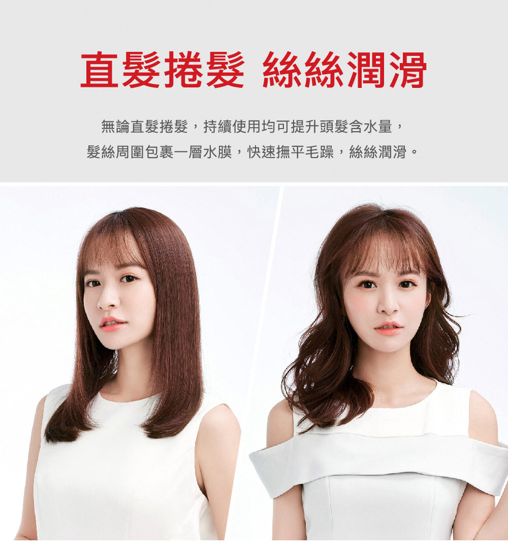 ◆無論直髮捲髮,持續使用均可提升頭髮含水量,快速撫平毛躁、絲絲潤滑!