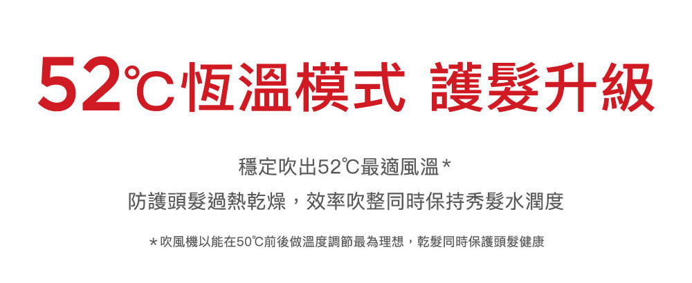 ◆52°C恆溫模式,穩定吹出最適風溫,效率吹整同時保持秀髮水潤度。