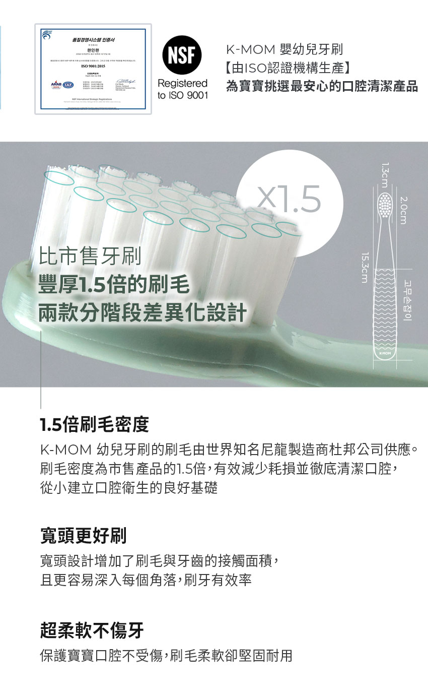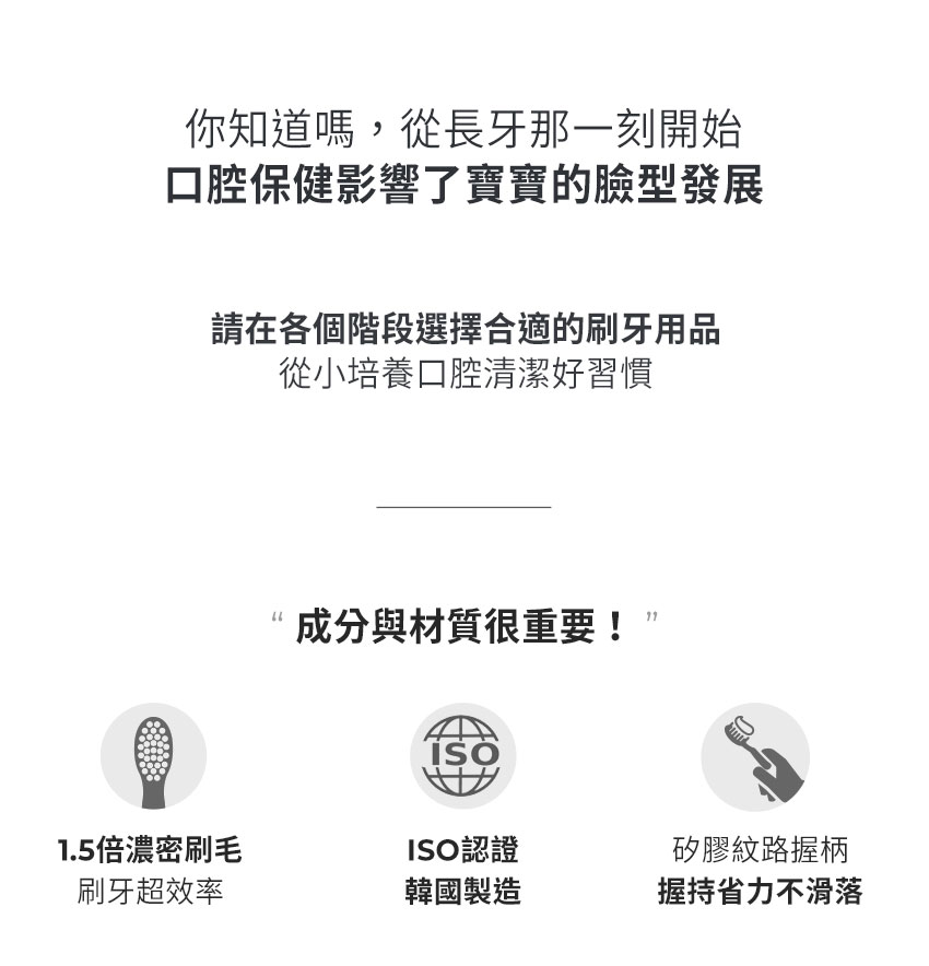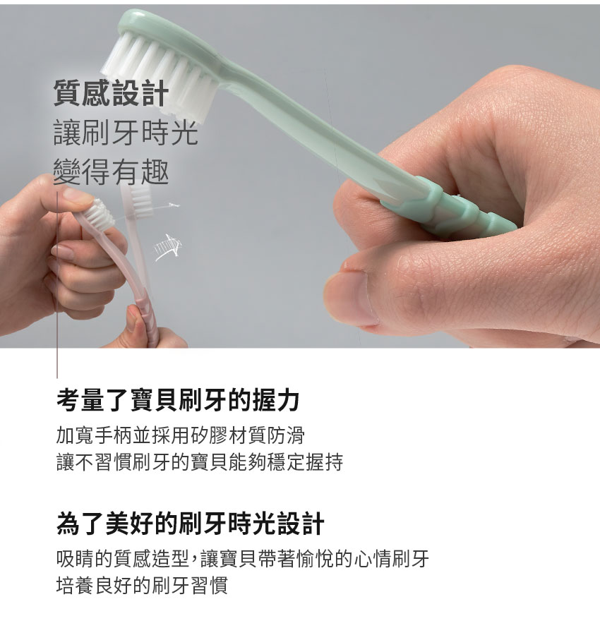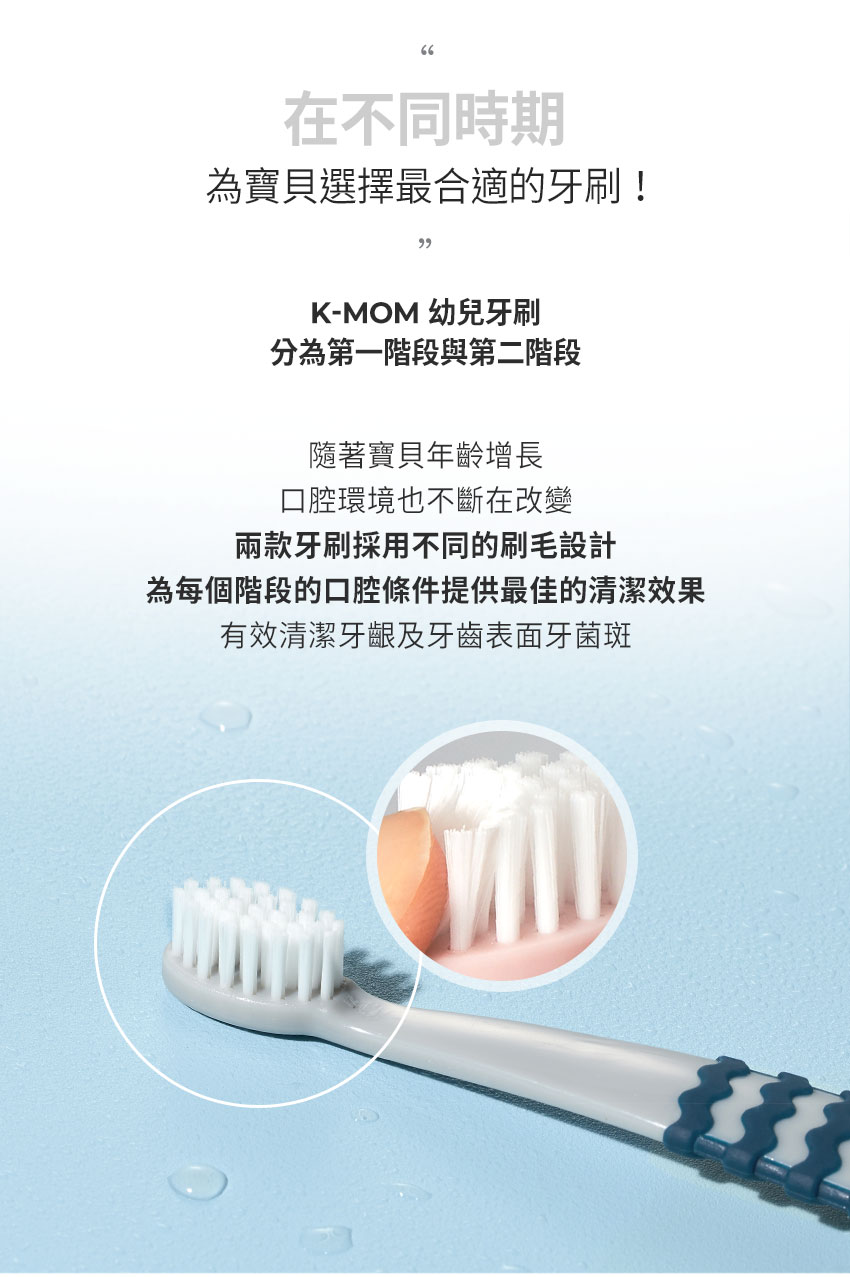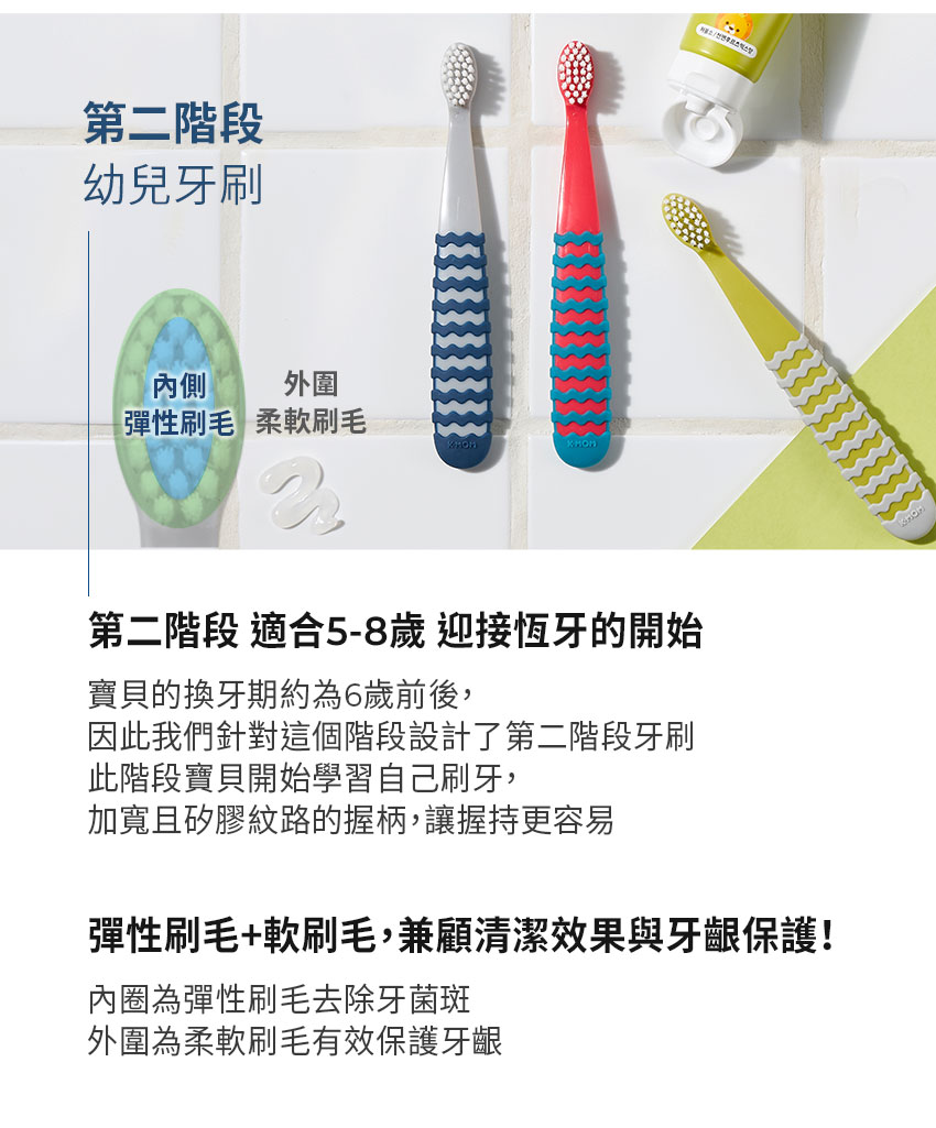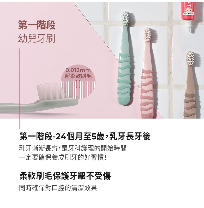 - 幼齒管理階段,寶寶開始長幼齒,需要更細軟的刷毛