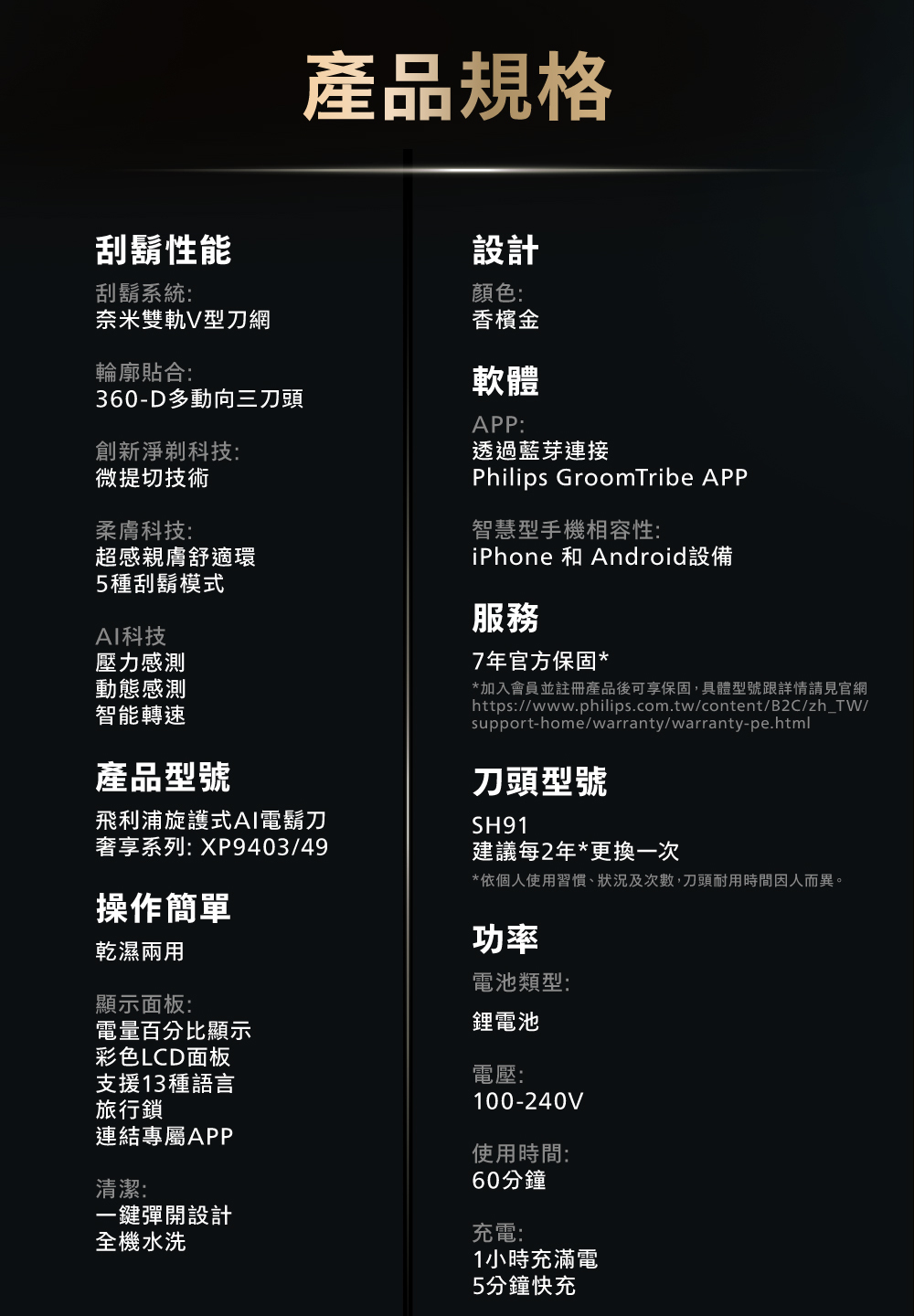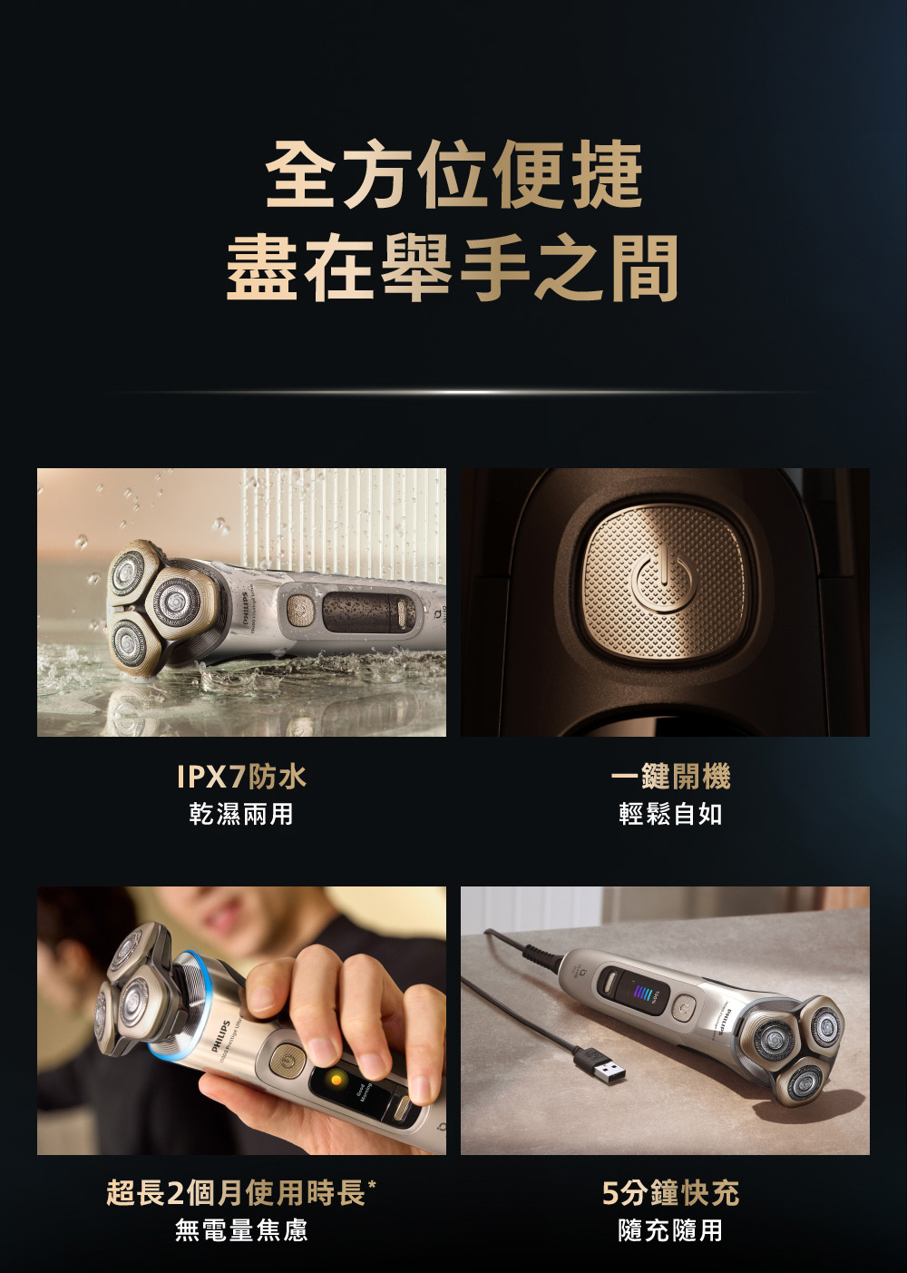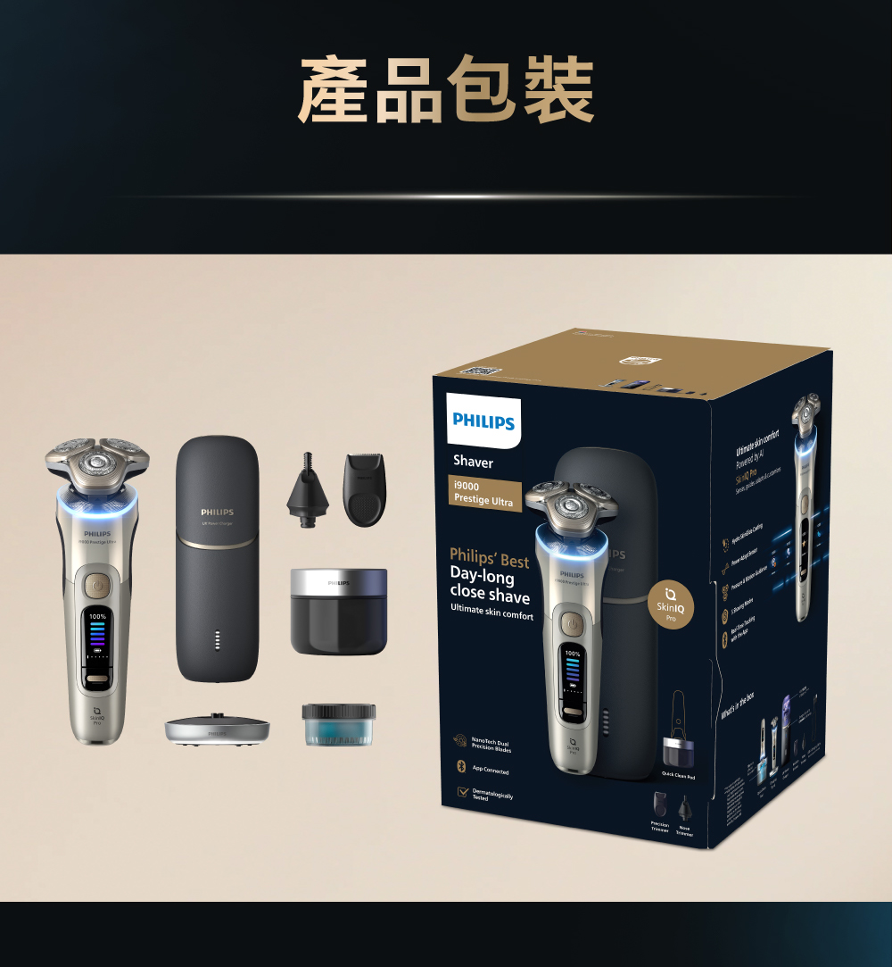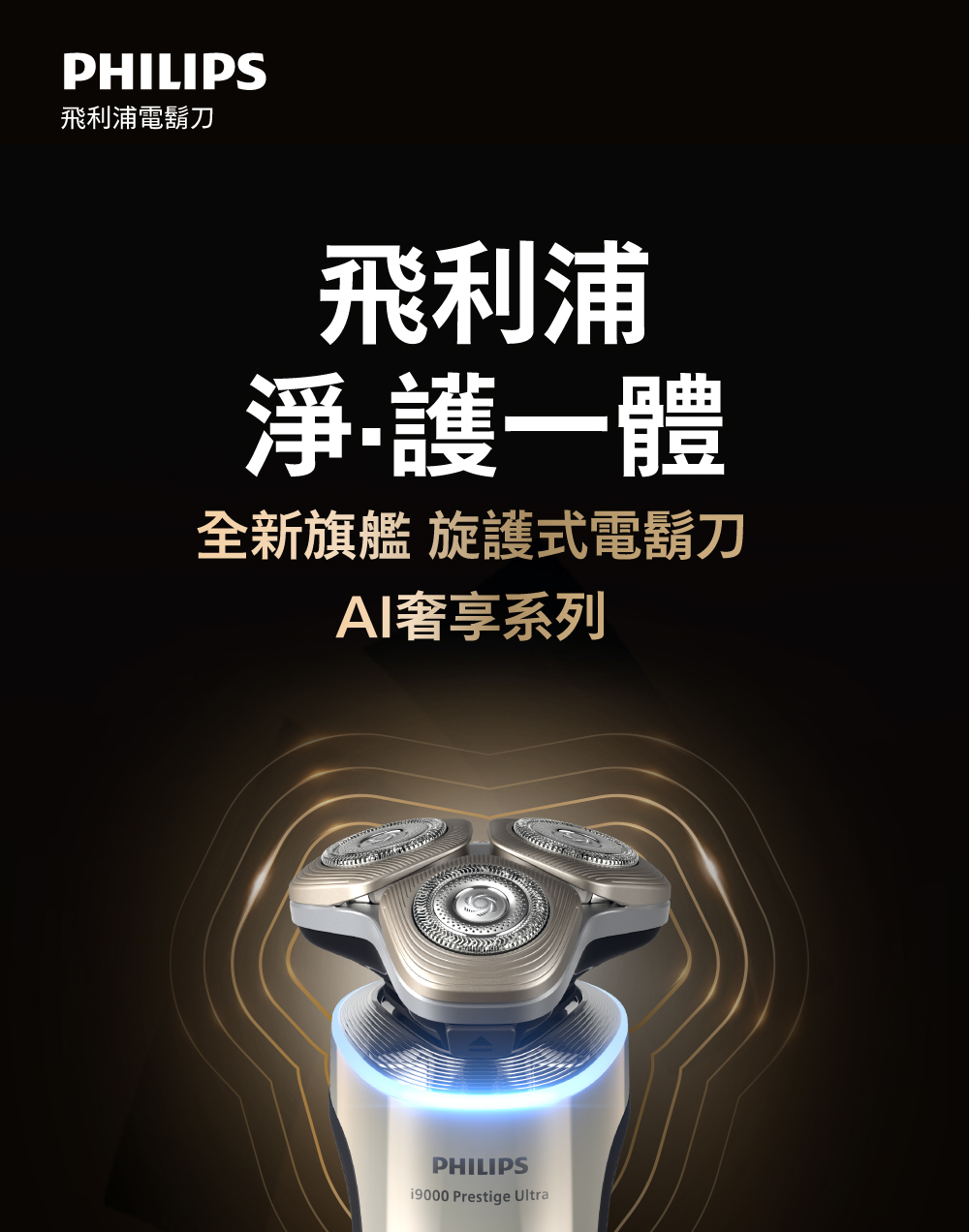 - 全新飛利浦Prestige旗艦S9000智能系列旋護式電鬍刀,結合AI科技,為您提供極致剃鬚體驗。
