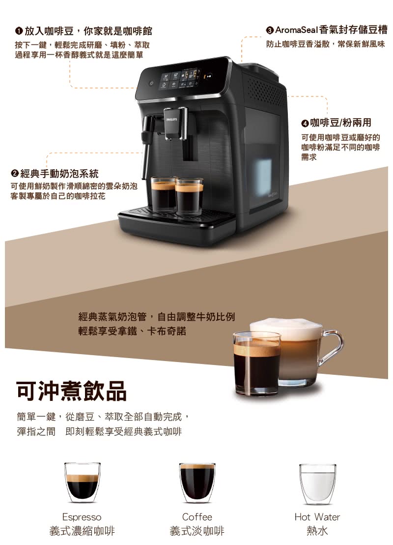 飛利浦 Series 2200 全自動義式咖啡機EP2220/14★80B010