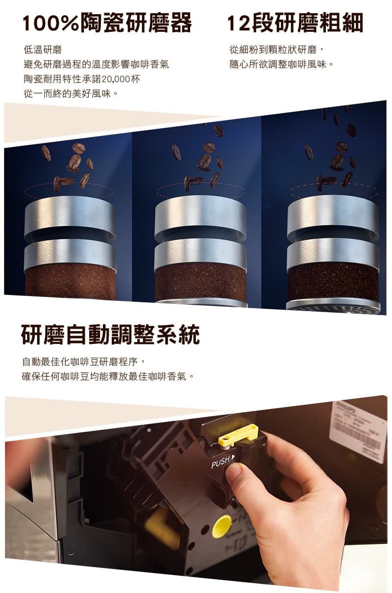 - 12段研磨粗細度,調整咖啡風味
