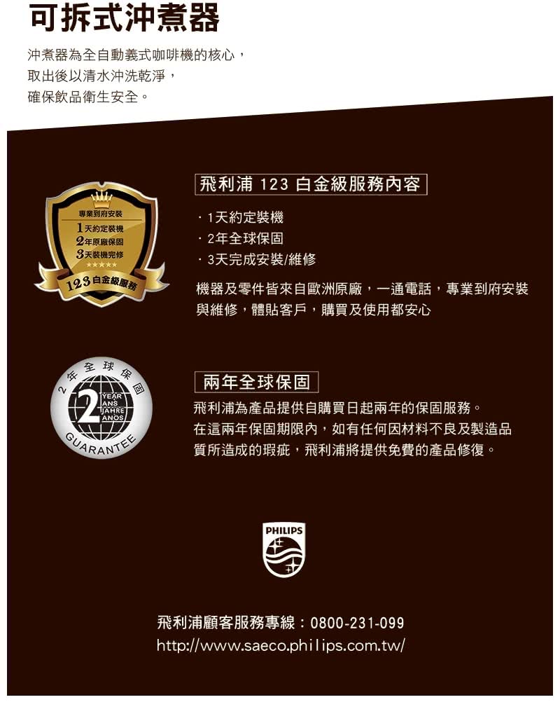 - 安裝AquaClean濾水器,平均沖煮5,000杯無須除鈣