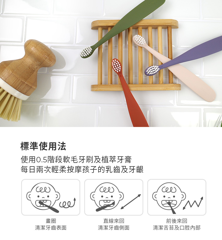 - 使用0.5階段軟毛牙刷及植萃牙膏