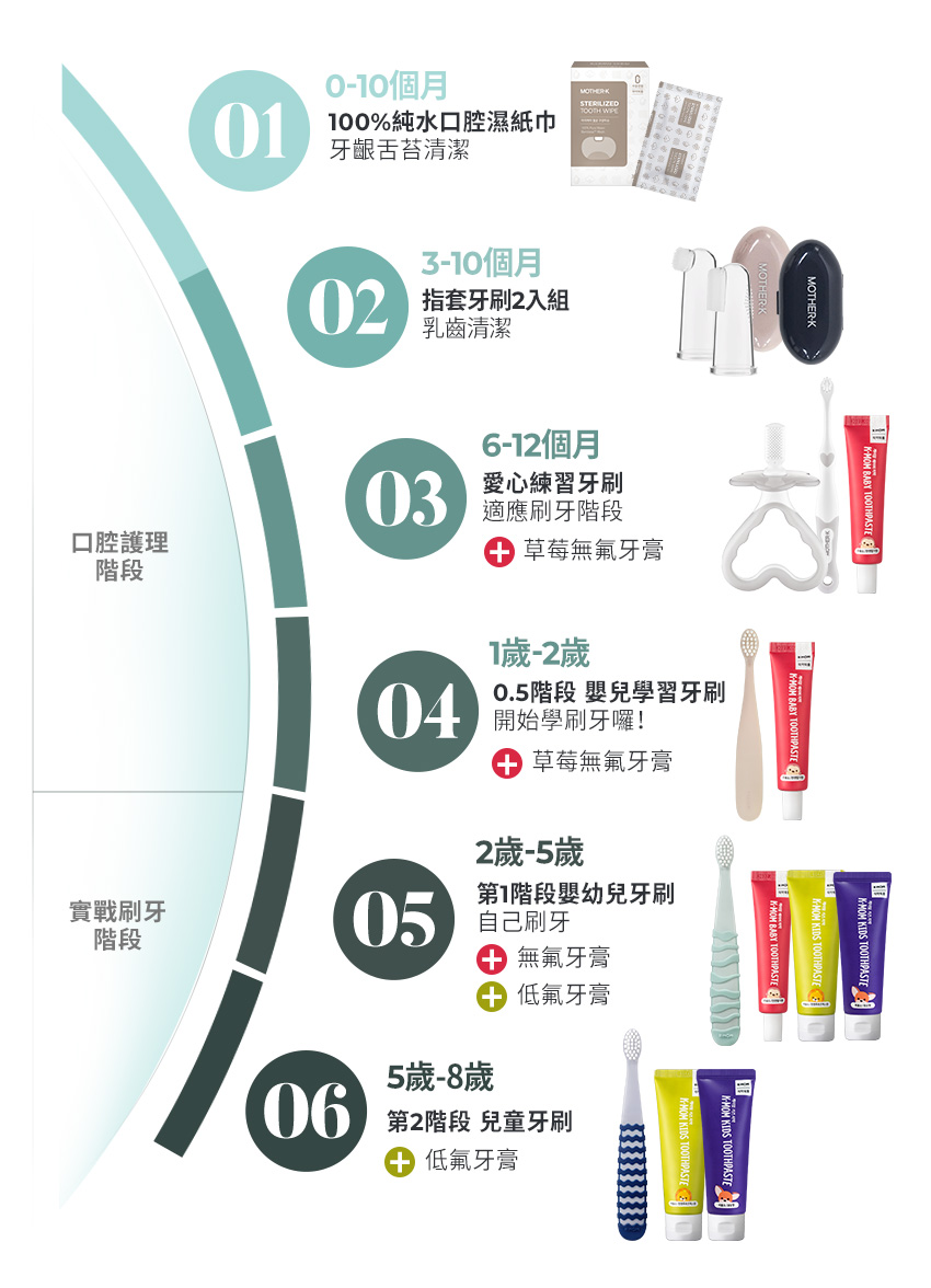 - 寶寶不會自行吐出時期建議降低牙膏用量