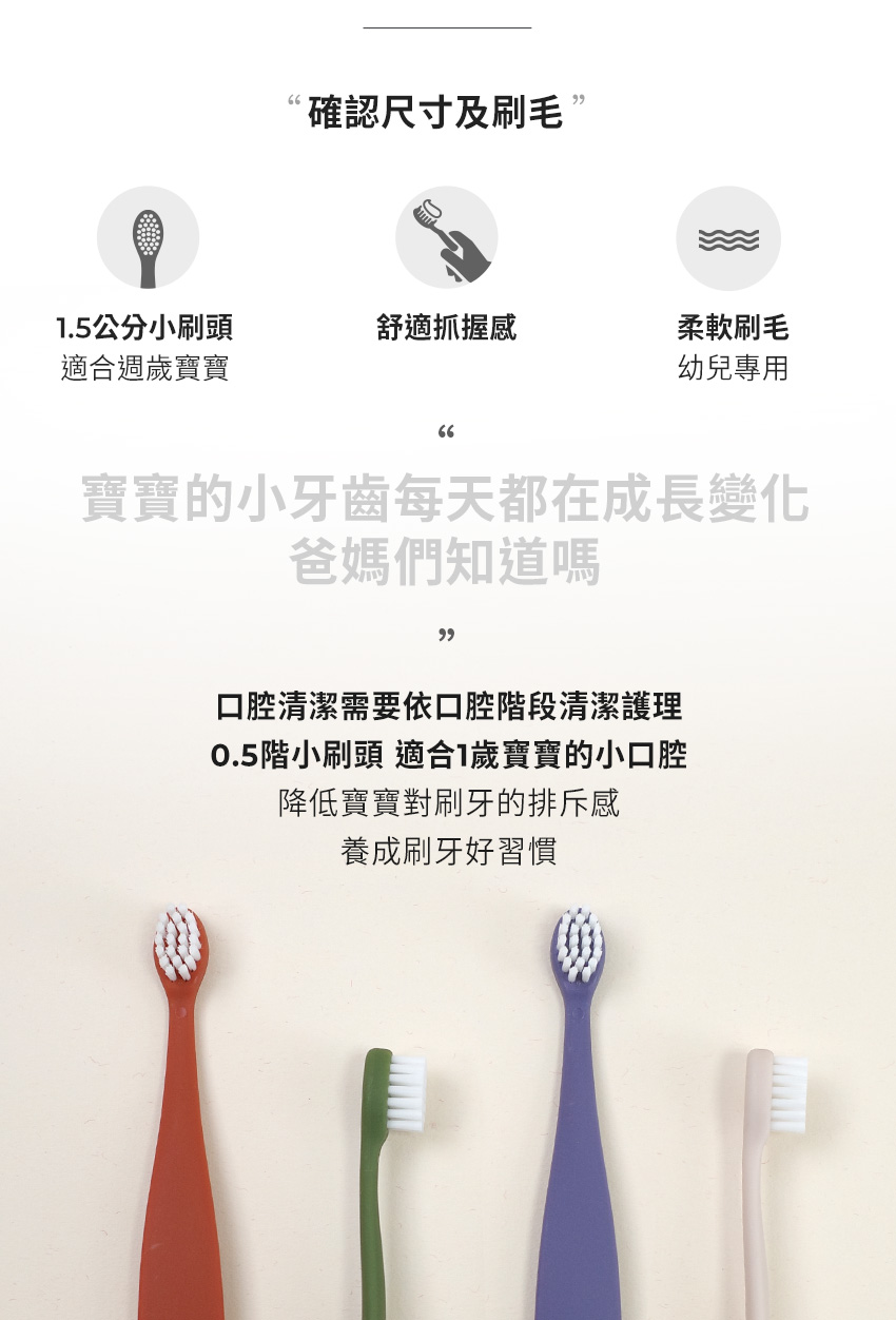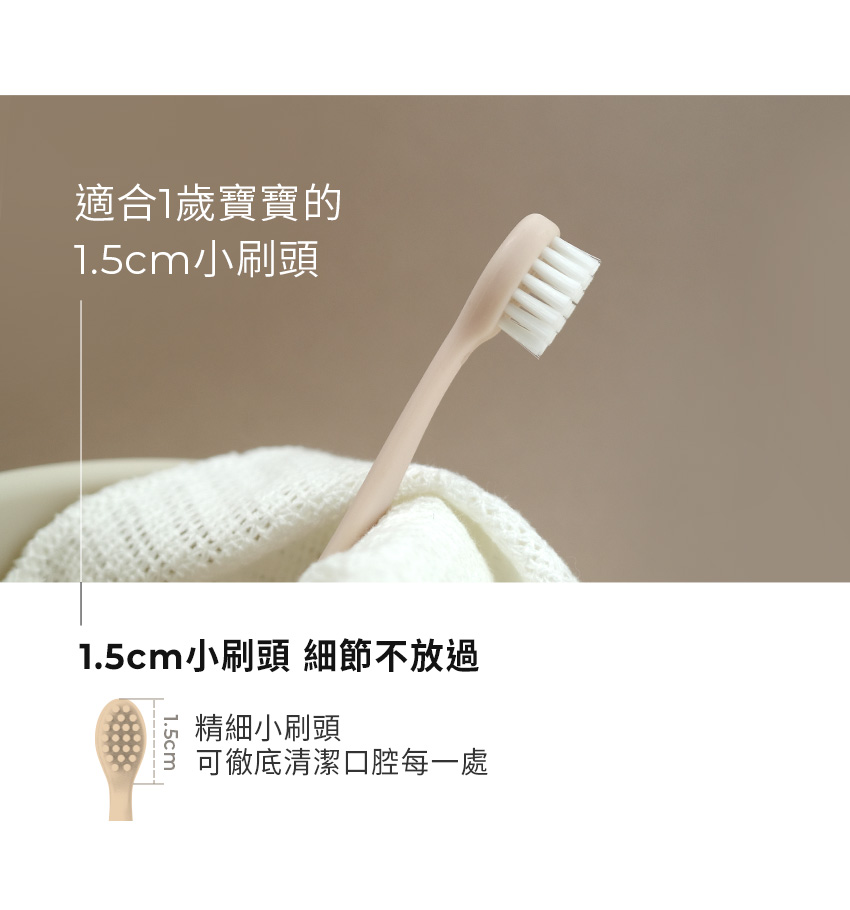 - 1.5cm小刷頭,適合1-2歲寶寶
