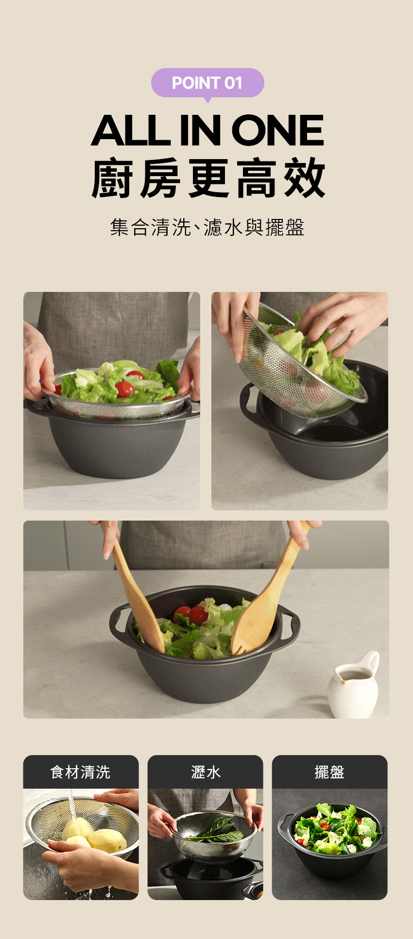 【MOTHER-K】★LIFE 摩登鋼藝料理瀝水盆3件組