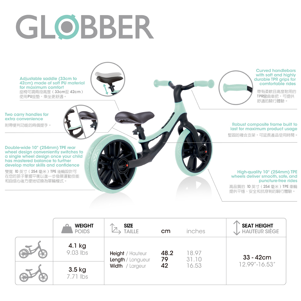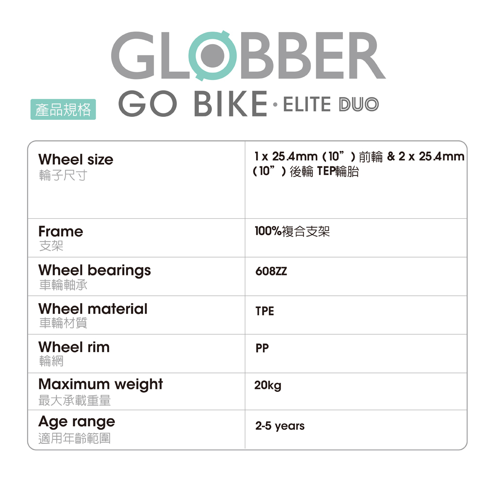※規格及重量以實車為準,GLOBBER原廠保留規格變動權利。