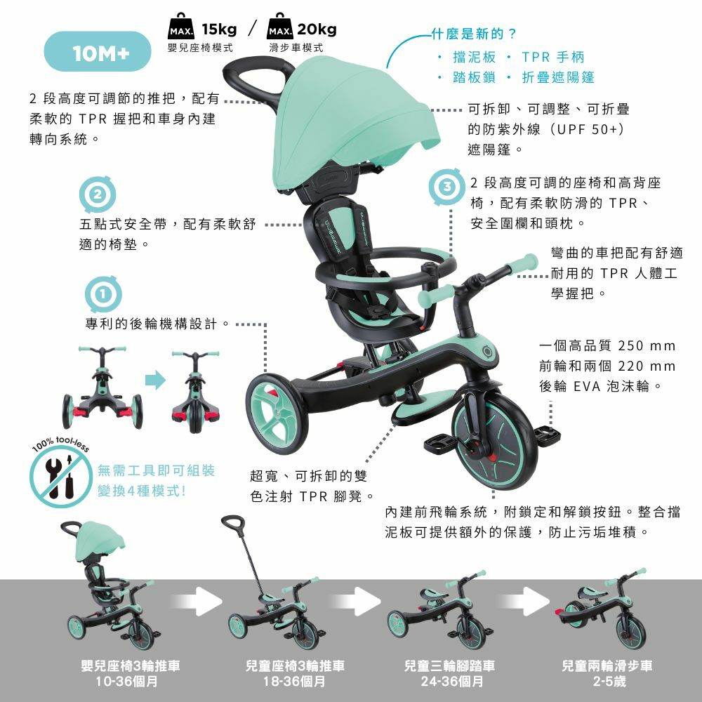 法國 GLOBBER 4合1 Trike多功能3輪推車-經典升級版