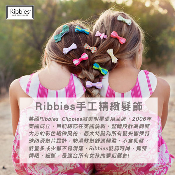 英國Ribbies Clippies於2006年在美國成立,現在總部設在英國倫敦,它優越的品質和迷人的風格,人氣一直在飆升! 整體設計為簡潔大方的彩色緞帶風格,最大特點為所有的髮夾皆採特殊防滑墊片設計,防滑軟墊舒適輕盈、不含乳膠,讓所有的髮質都能得到極好的保護,髮量多、髮量少都不易滑落,Ribbies髮飾時尚、獨特、精緻、細膩,是適合所有女孩的夢幻髮飾!