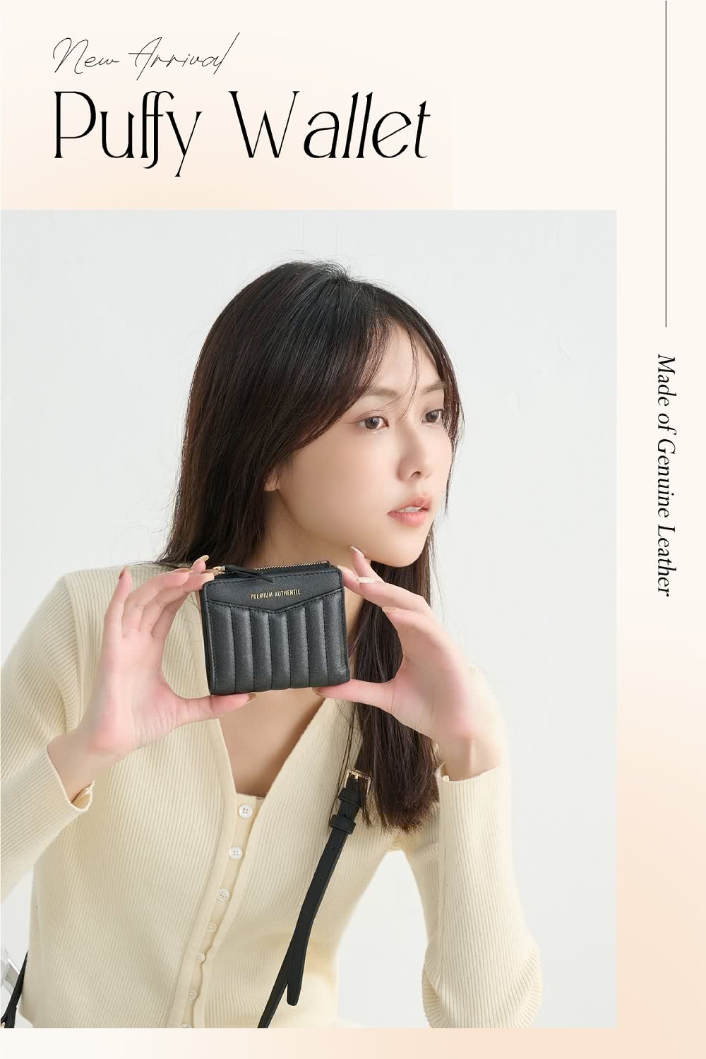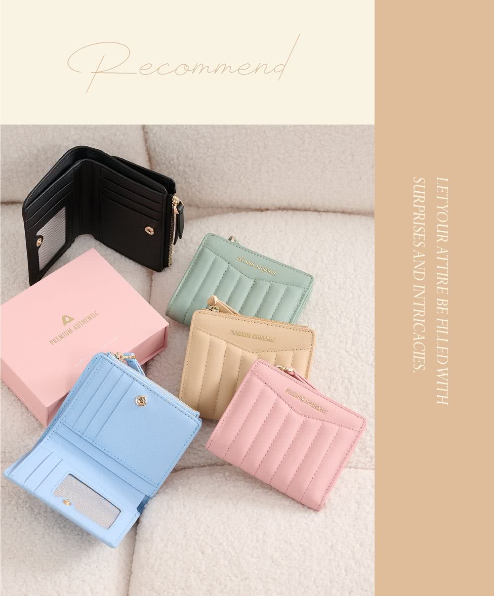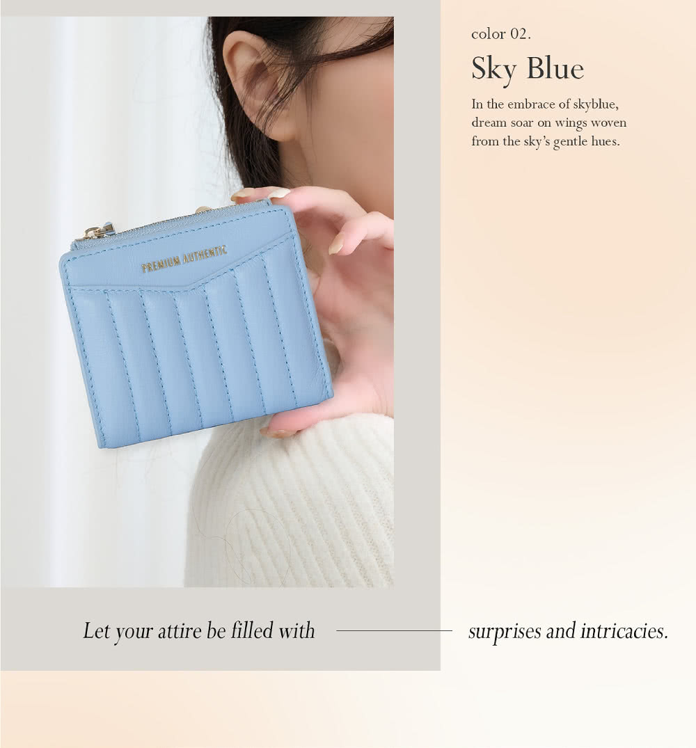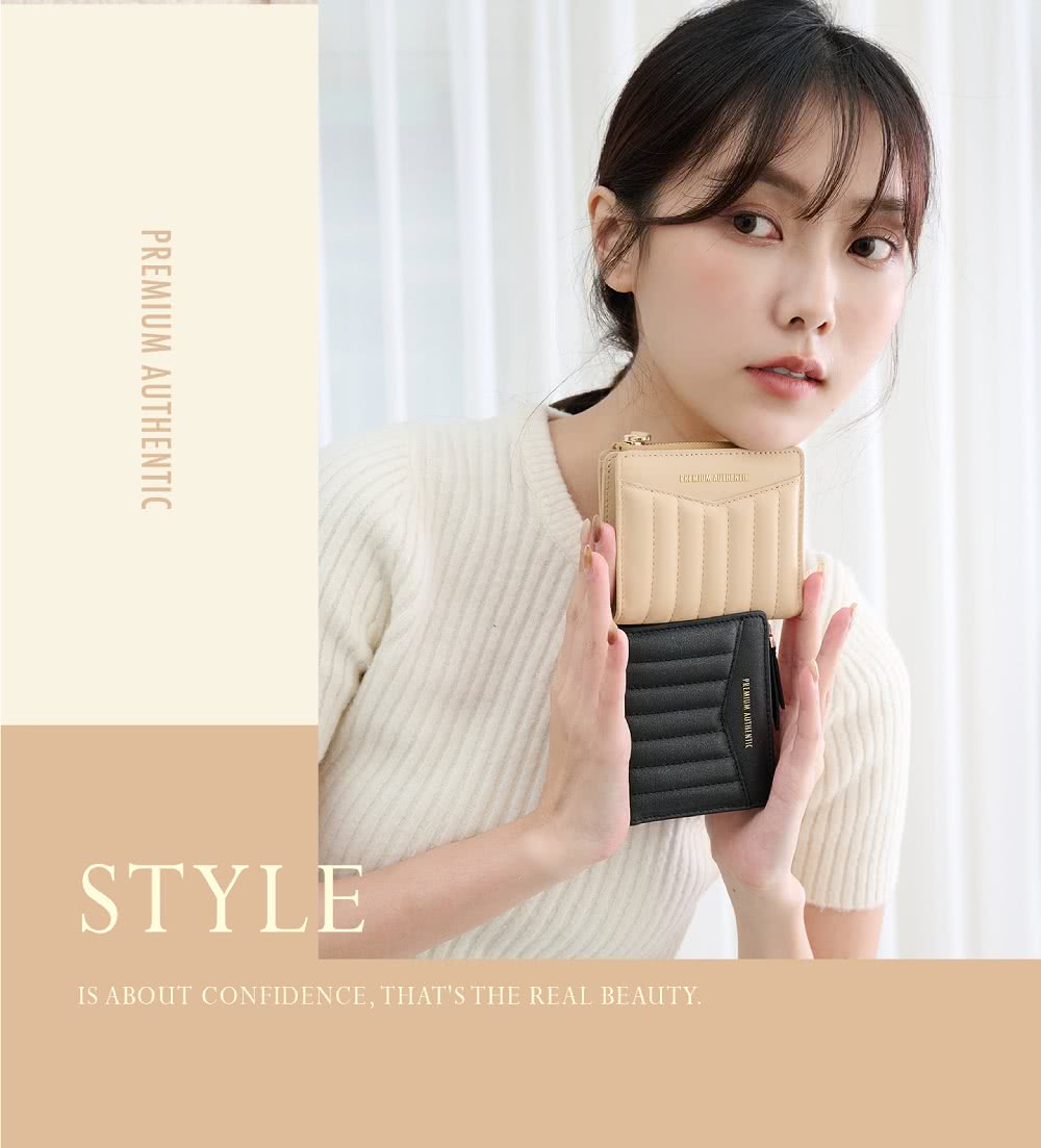- 嚴選手感真皮皮革,結合獨特的衍縫皮革設計,展現出夢幻甜美的質感。擁有九格卡槽、拉鍊零錢袋及鈔票夾層,功能齊全,配以便利的子母釦開合,讓您輕鬆應對繁瑣的日常。簡單又聰明的收納方式,讓您外出時不再手忙腳亂,提升您的出行便利。