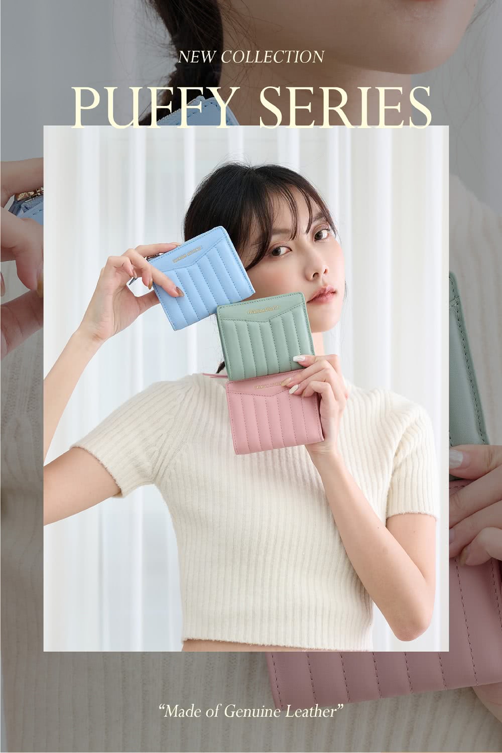 PA.Puffy真皮車線拉鍊短夾-5色✿20B004