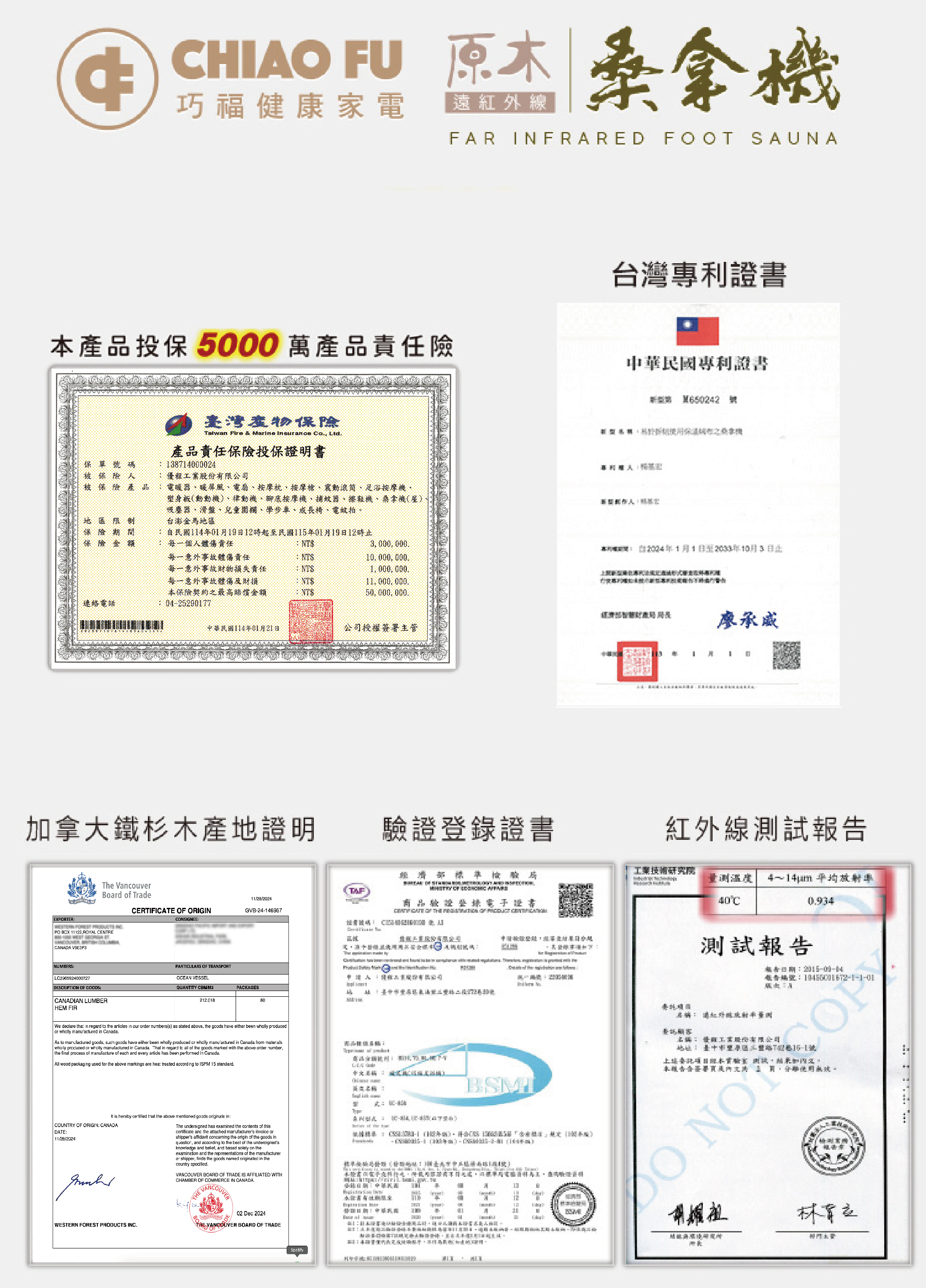 5000萬產品責任險及多項認證
