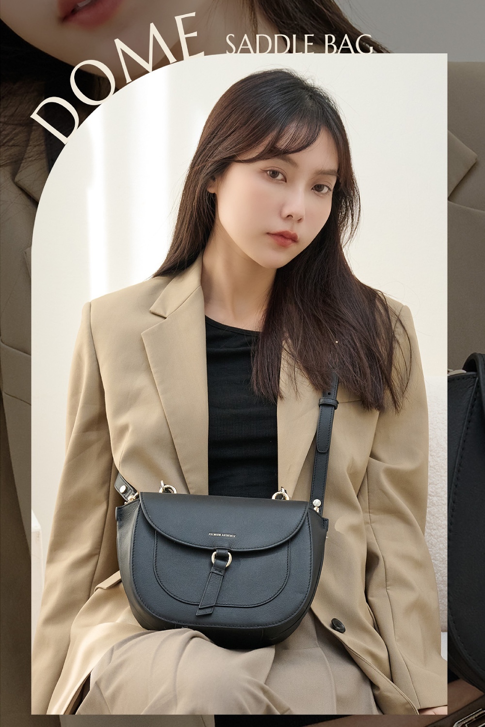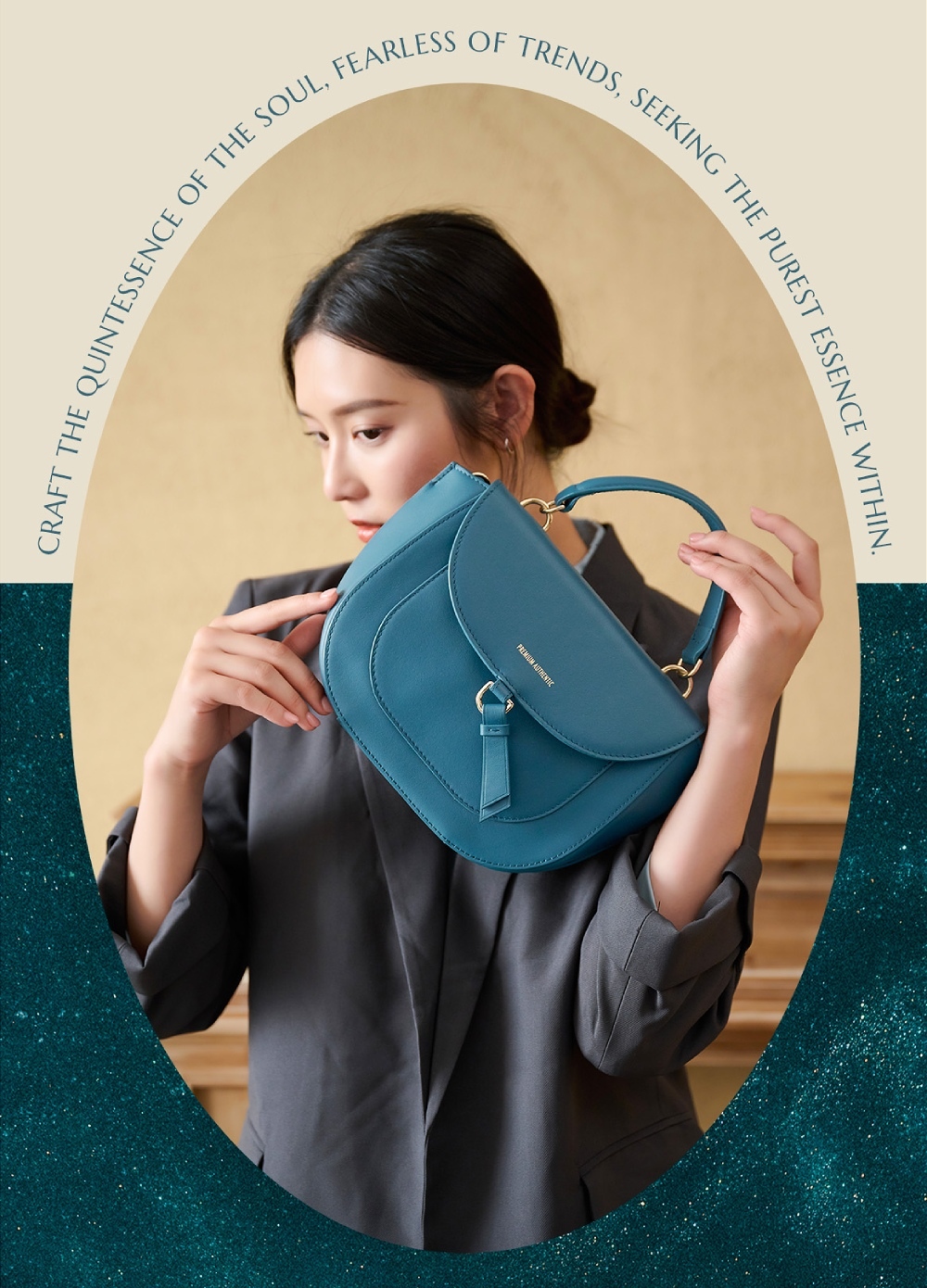 - 嚴選手感真皮皮革,充滿設計感的圓潤包身、幾何飾片帶有俐落簡潔之美,採用頂級牛皮製成,溫潤觸感令人愛不釋手。此款背帶可拆卸成為手提馬鞍包,是一款適合都會女性通勤、日常兩宜的百搭包款。