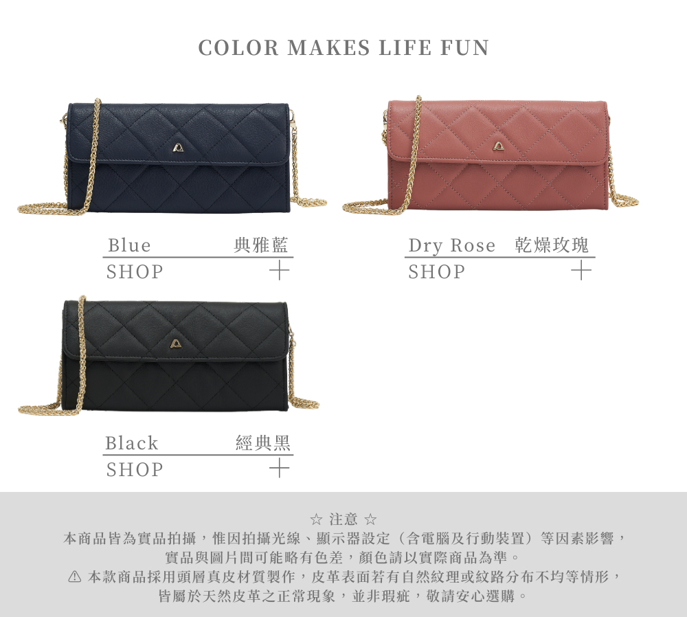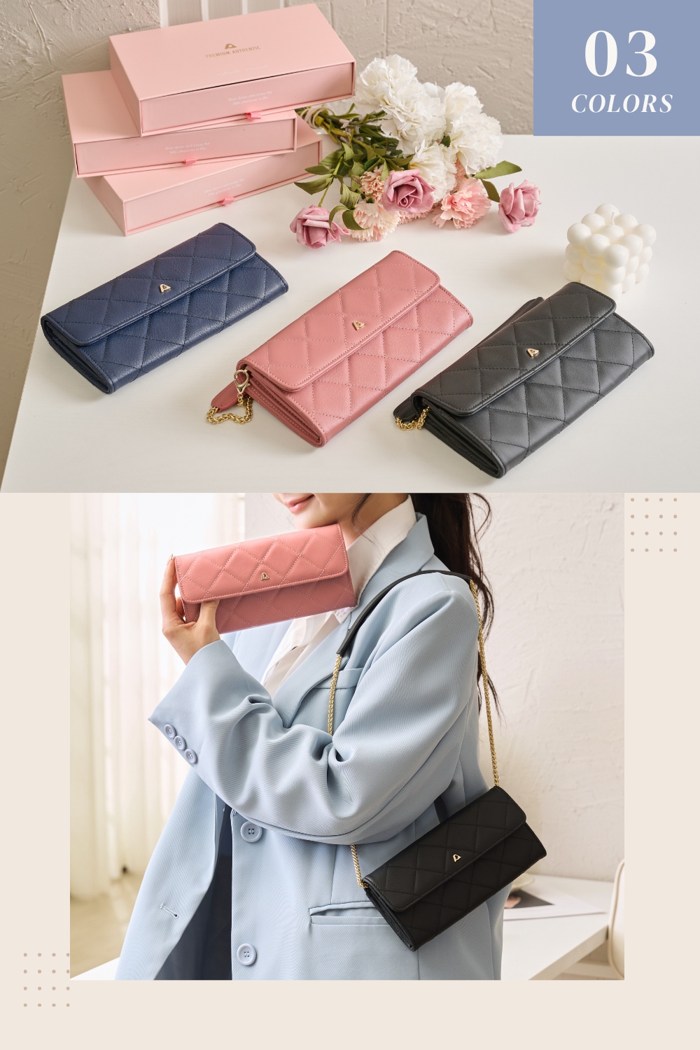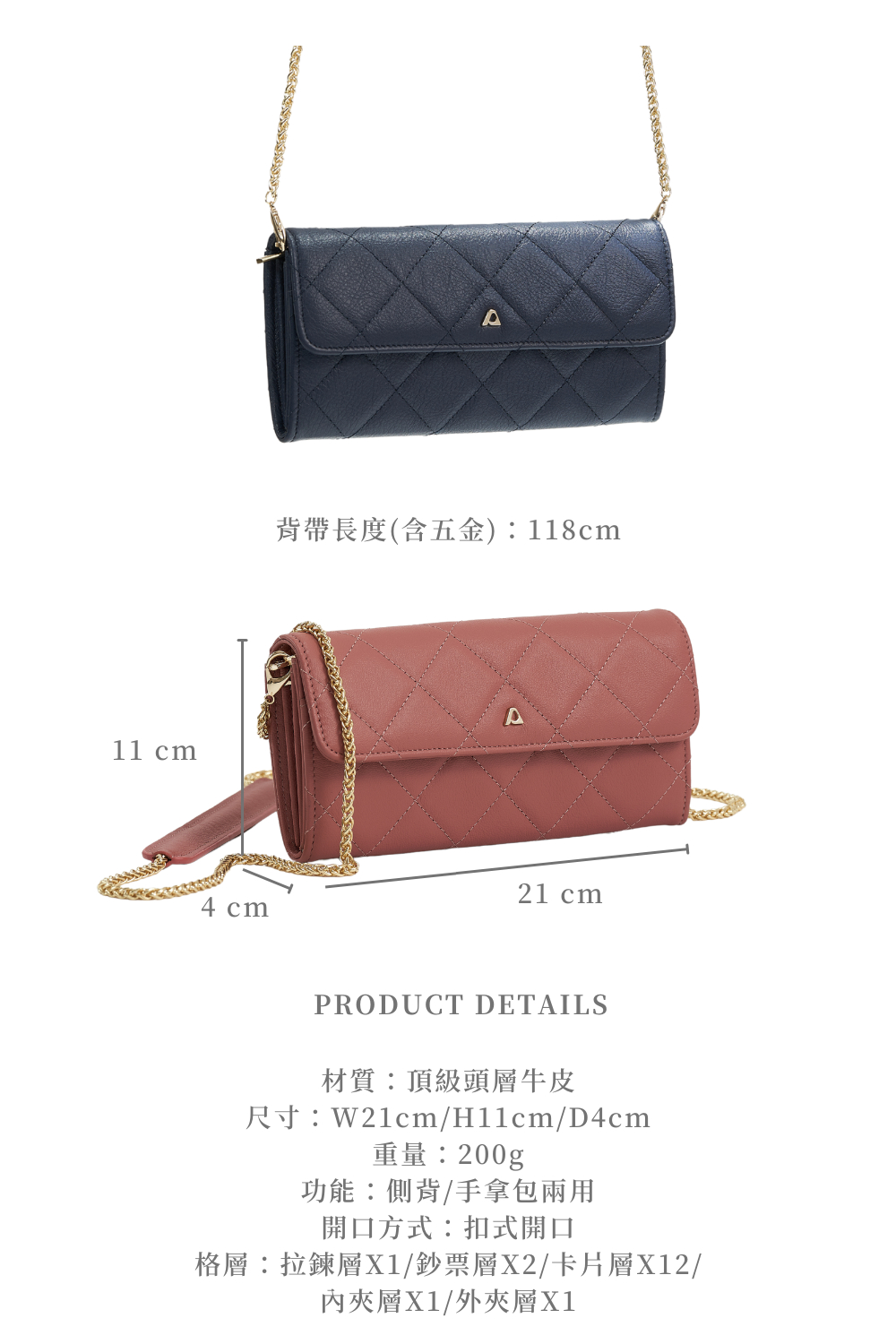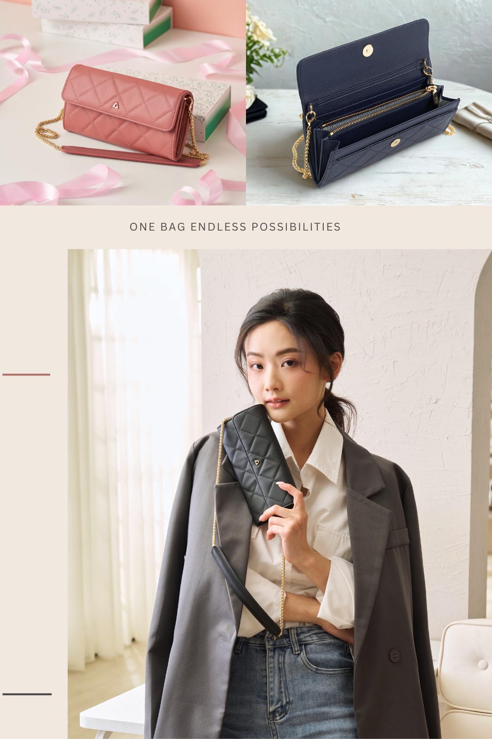 - 嚴選手感真皮皮革,獨特的菱格設計,結合時尚與實用。可拆卸鍊條,輕鬆轉換為皮夾或斜背包,兩用設計,滿足不同場合需求。