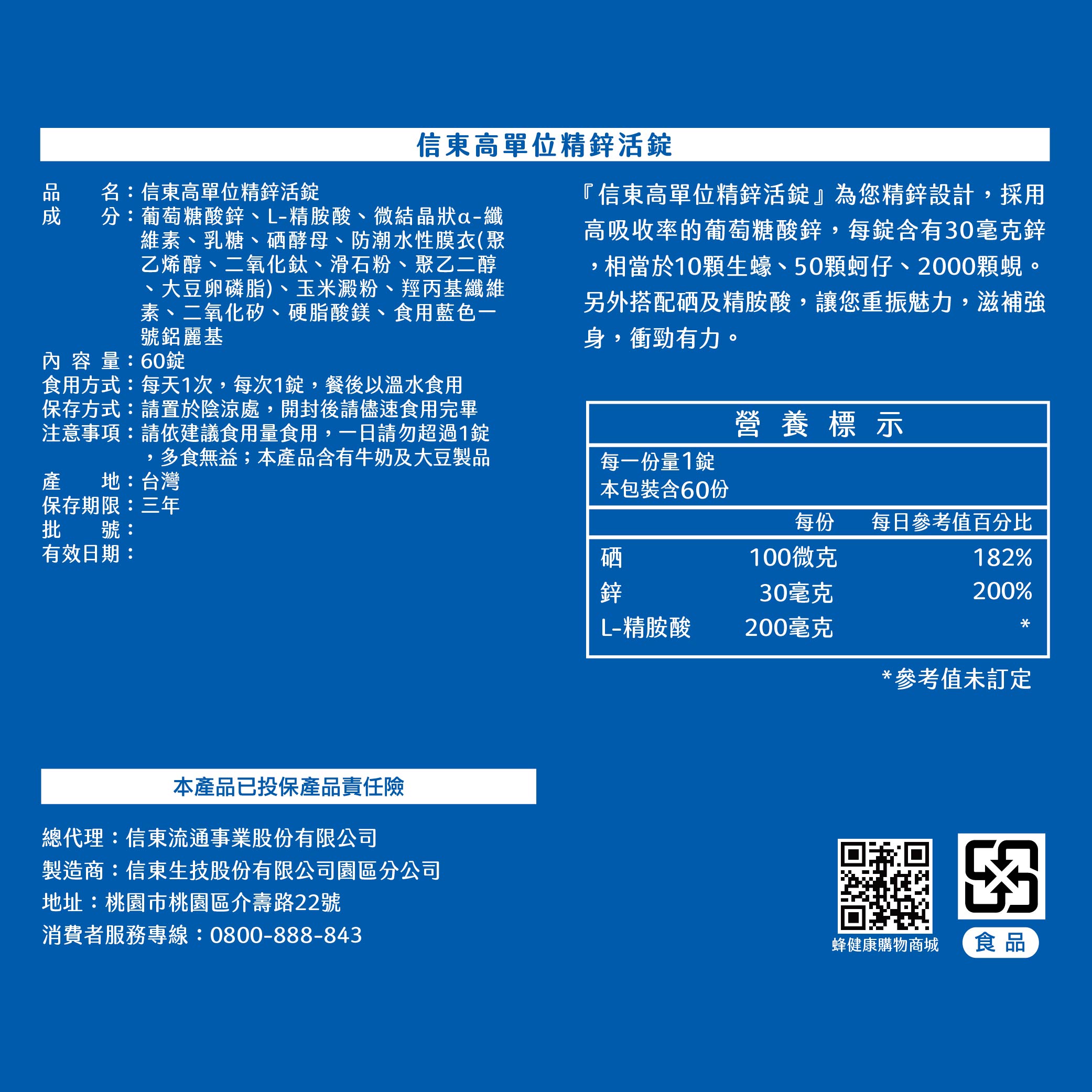 信東生技 高單位精鋅活錠(60錠/盒) ▶90D016