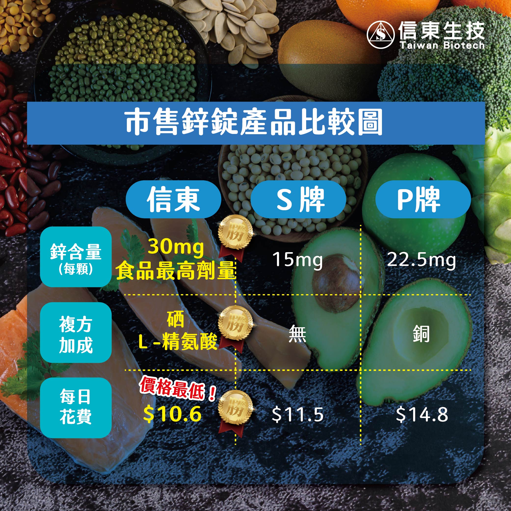 ● 高吸收率葡萄糖酸鋅,複方加乘,衝勁有力