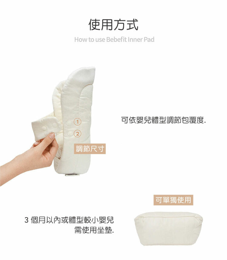 適用:智能嬰兒揹帶專用 (嬰兒 0 - 6 個月以內或頸部發育穩定度不足以前,請搭配智能揹帶使用)