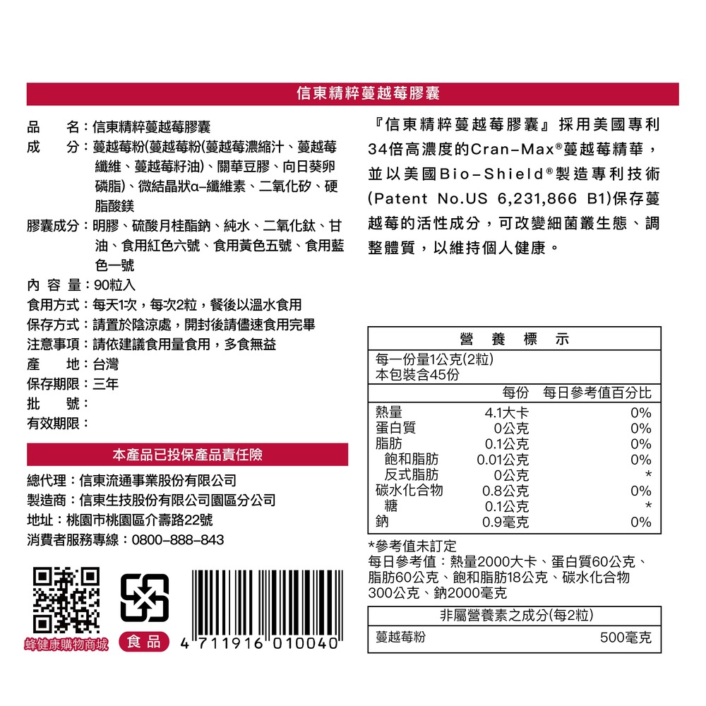 信東生技 精粹蔓越莓膠囊 (90粒/盒) ▶90D016