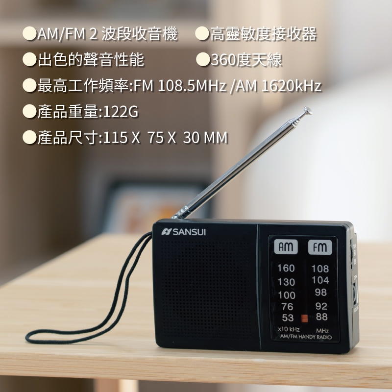 - 支援AM/FM兩種波段,後方旋鈕輕鬆切換你想聽的頻道