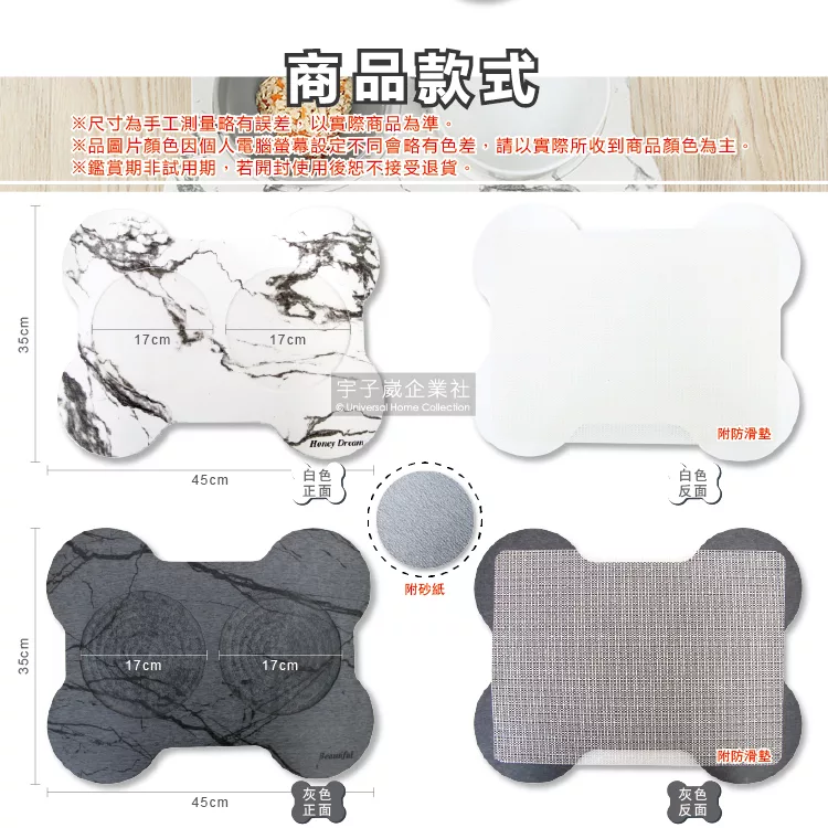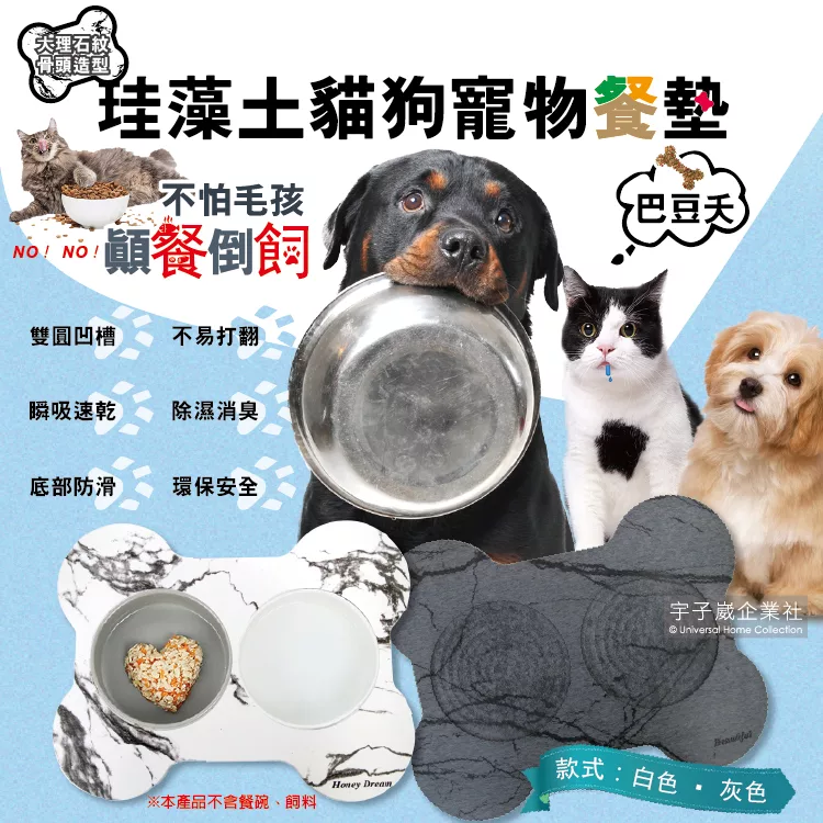 ●品名:大理石紋骨頭造型飼料碗拖盤珪藻土防滑貓狗寵物餐墊