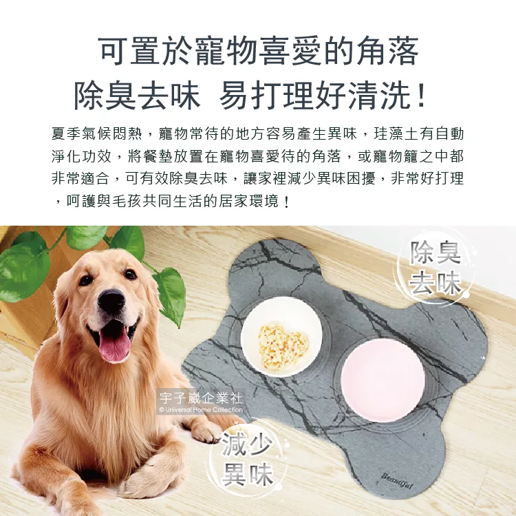 (2盒任選超值組)生活良品大理石紋骨頭造型飼料碗拖盤珪藻土防滑寵物餐桌墊45x35cmx1入/盒✿70D033