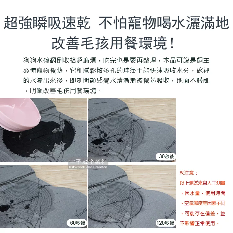 - 超強瞬吸速乾,不怕寵物喝水灑滿地,改善毛孩用餐環境!