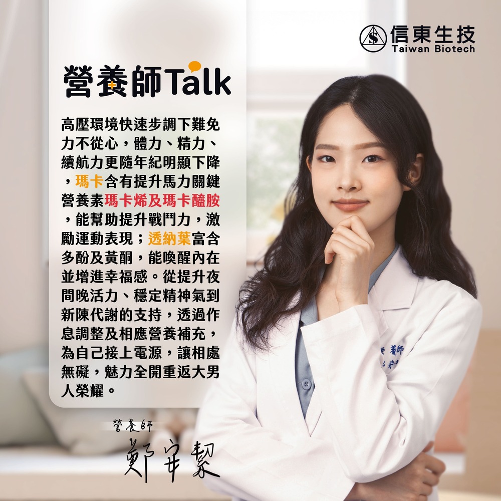 ● 祕魯瑪卡+專利植威剛透納葉+鋅+B群+精胺酸