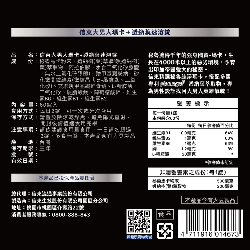 信東生技 大男人瑪卡+透納葉速溶錠(60錠) ▶90D016