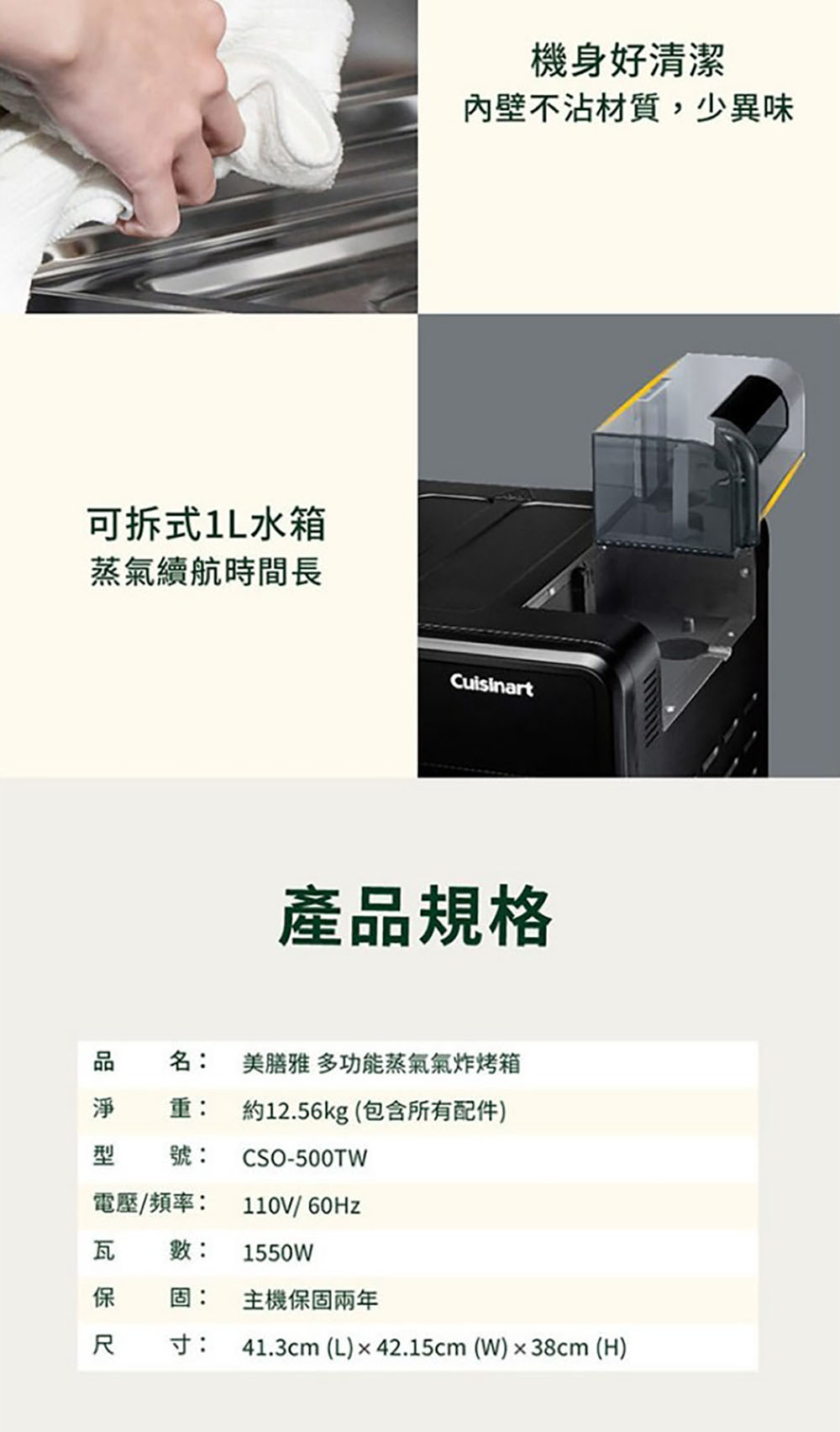 【Cuisinart 美膳雅】20L多功能蒸氣氣炸烤箱 CSO-500TW★80B010