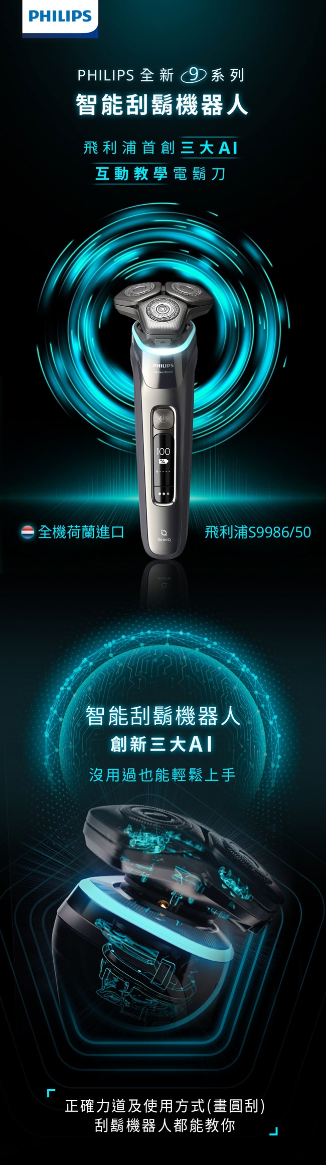 【(登錄送)好禮2選一 】【PHILIPS 飛利浦】Shaver series 9000乾濕兩用電鬍刀 S9986/50★80B010
