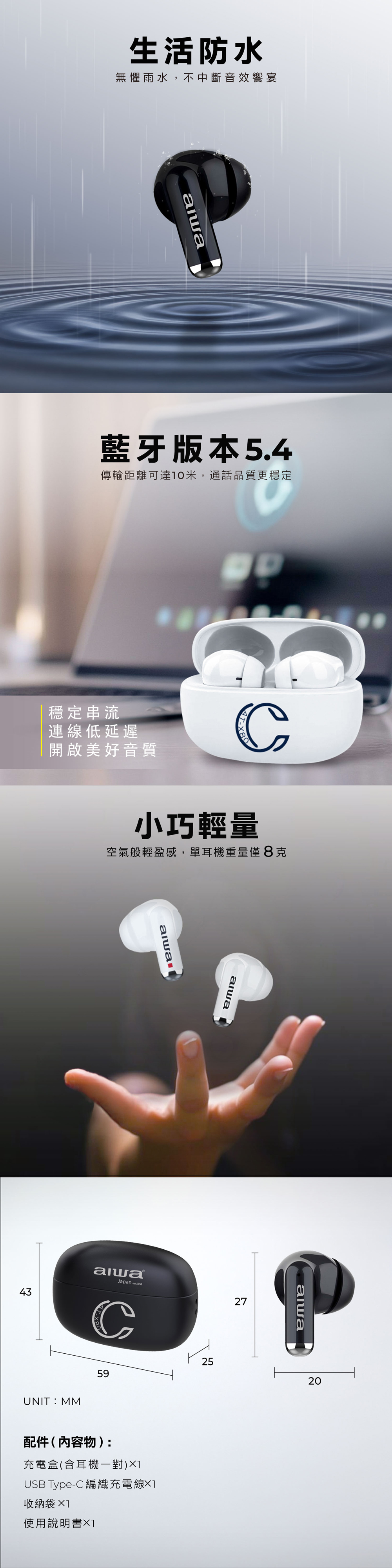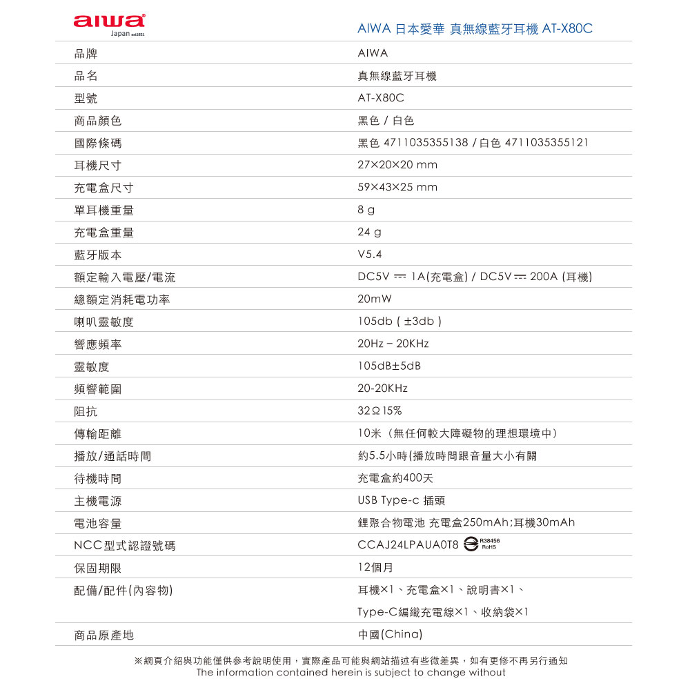 AIWA 愛華 ENC 環境降噪 真無線藍牙耳機 AT-X80C