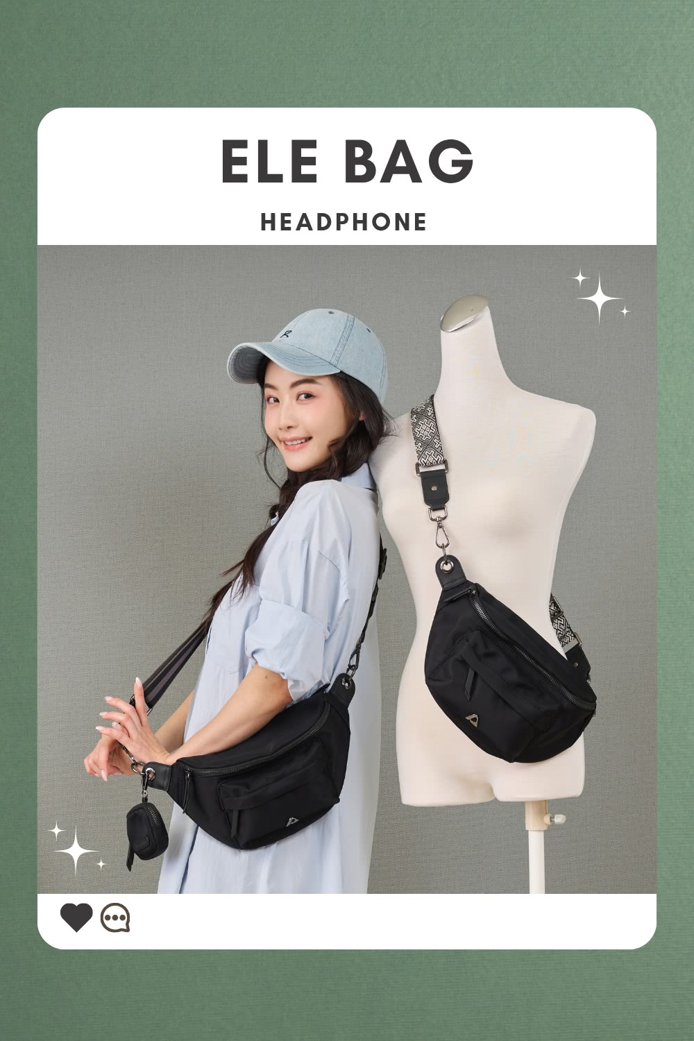 PA.Ele尼龍耳機小方包-個性黑✿20B004