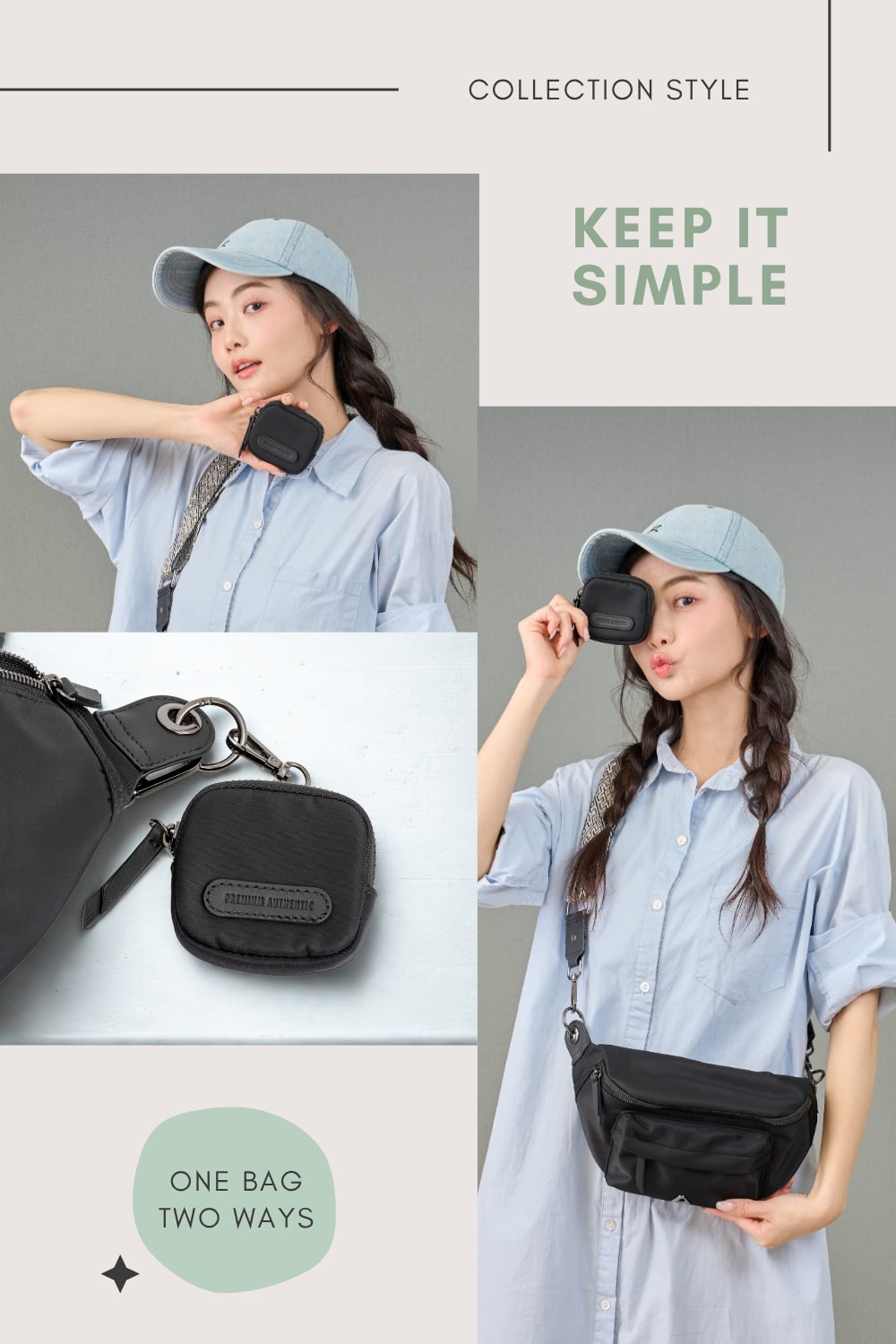 - 雖為雖為尼龍搭配部分真皮材質,但其小巧設計讓它也可以當作小錢包使用,可隨意掛置於包包的內外側,增添一抹時尚感和個性化選擇,無論是內掛還是外掛,都能輕鬆搭配您的包包。