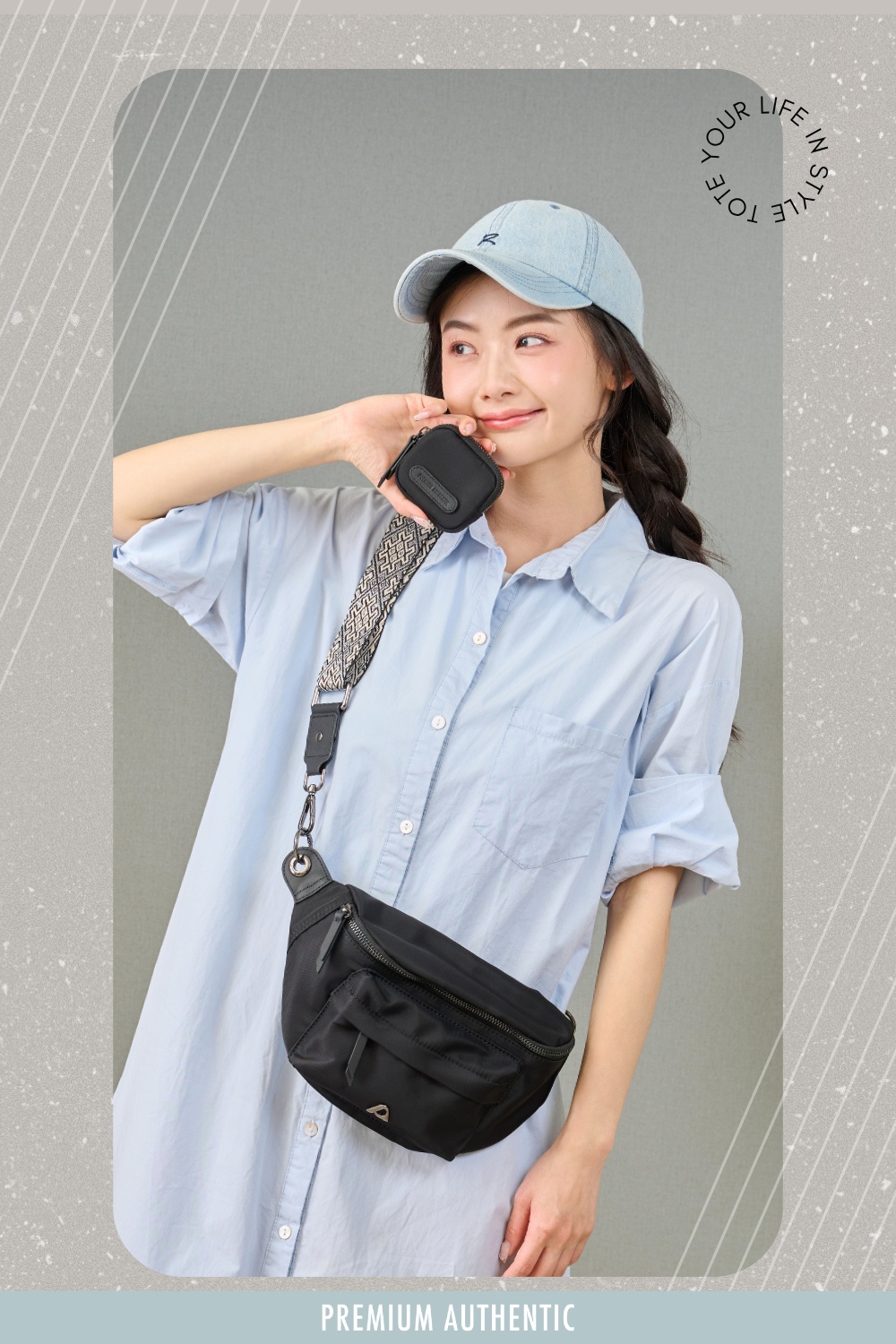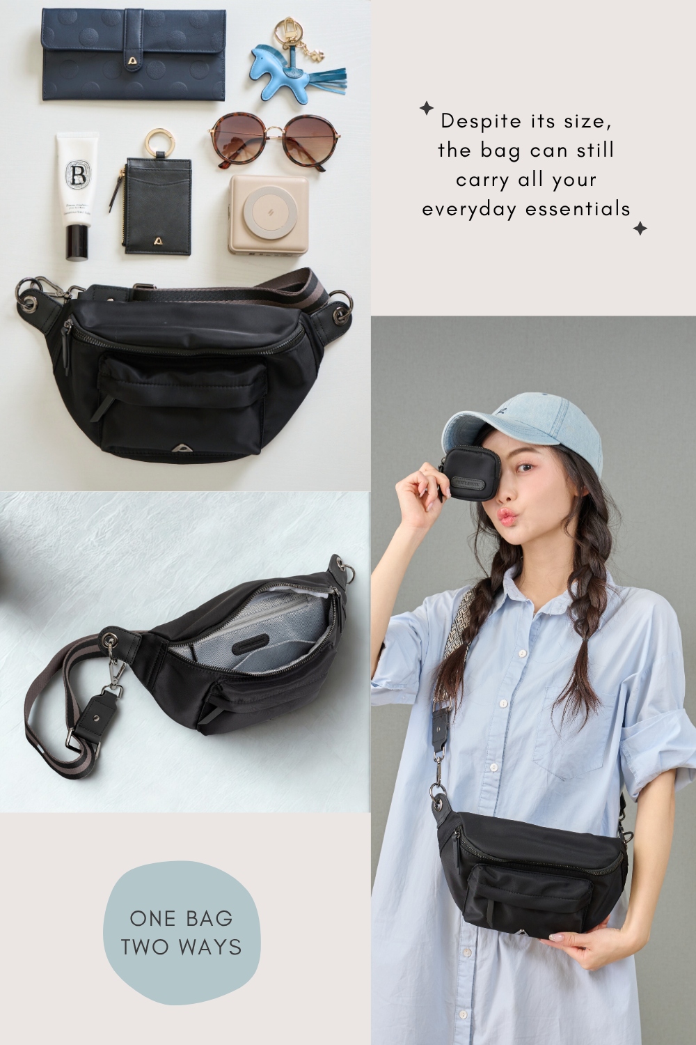 - 為中性風設計,擁有獨特的條紋織帶樣式,為簡單的胸包增添了個性化風格。此款胸包採用尼龍搭配部分真皮材質,無論是單肩背、斜背,還是固定於胸前,都能提供穩定舒適的佩戴感。