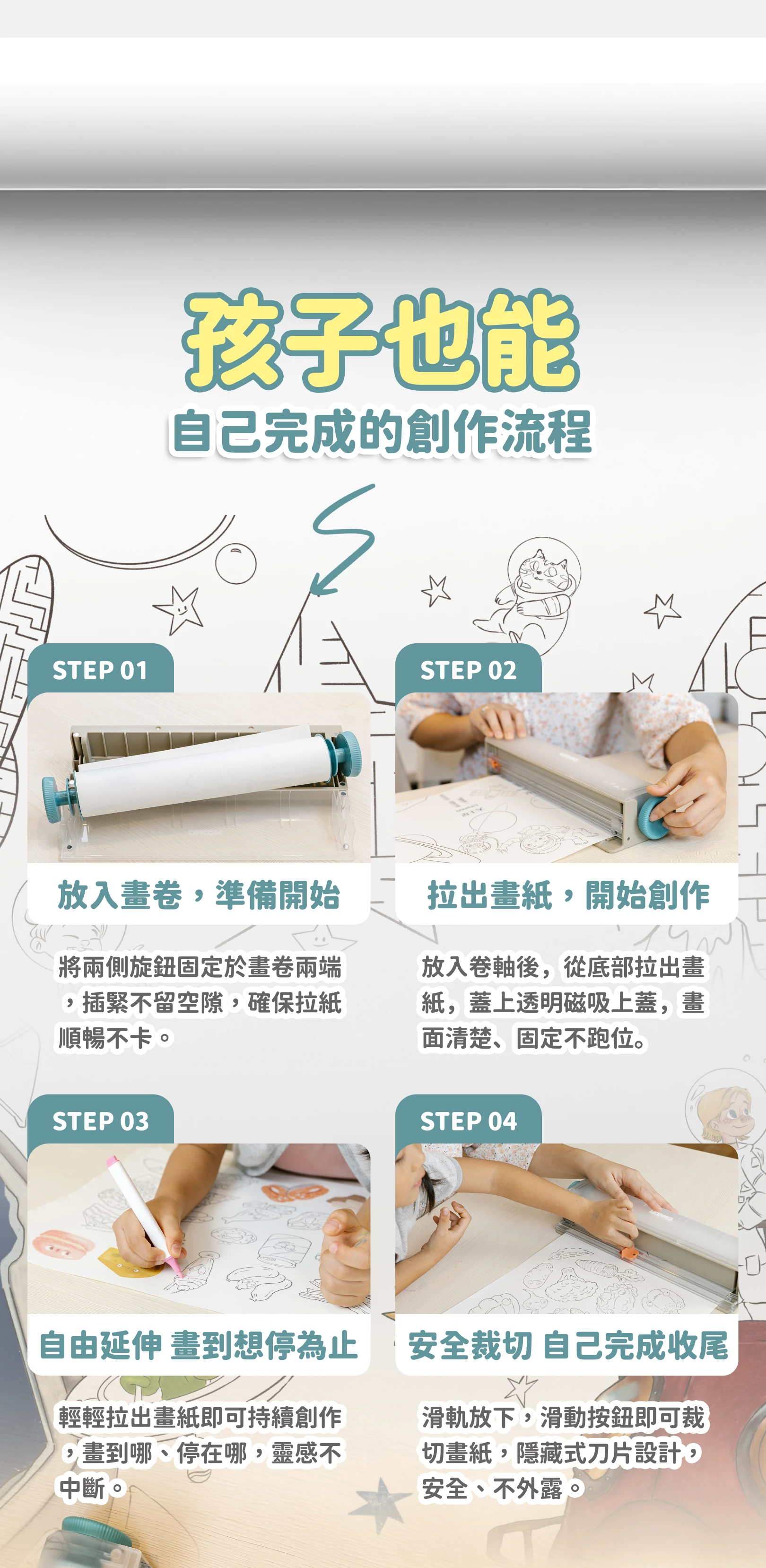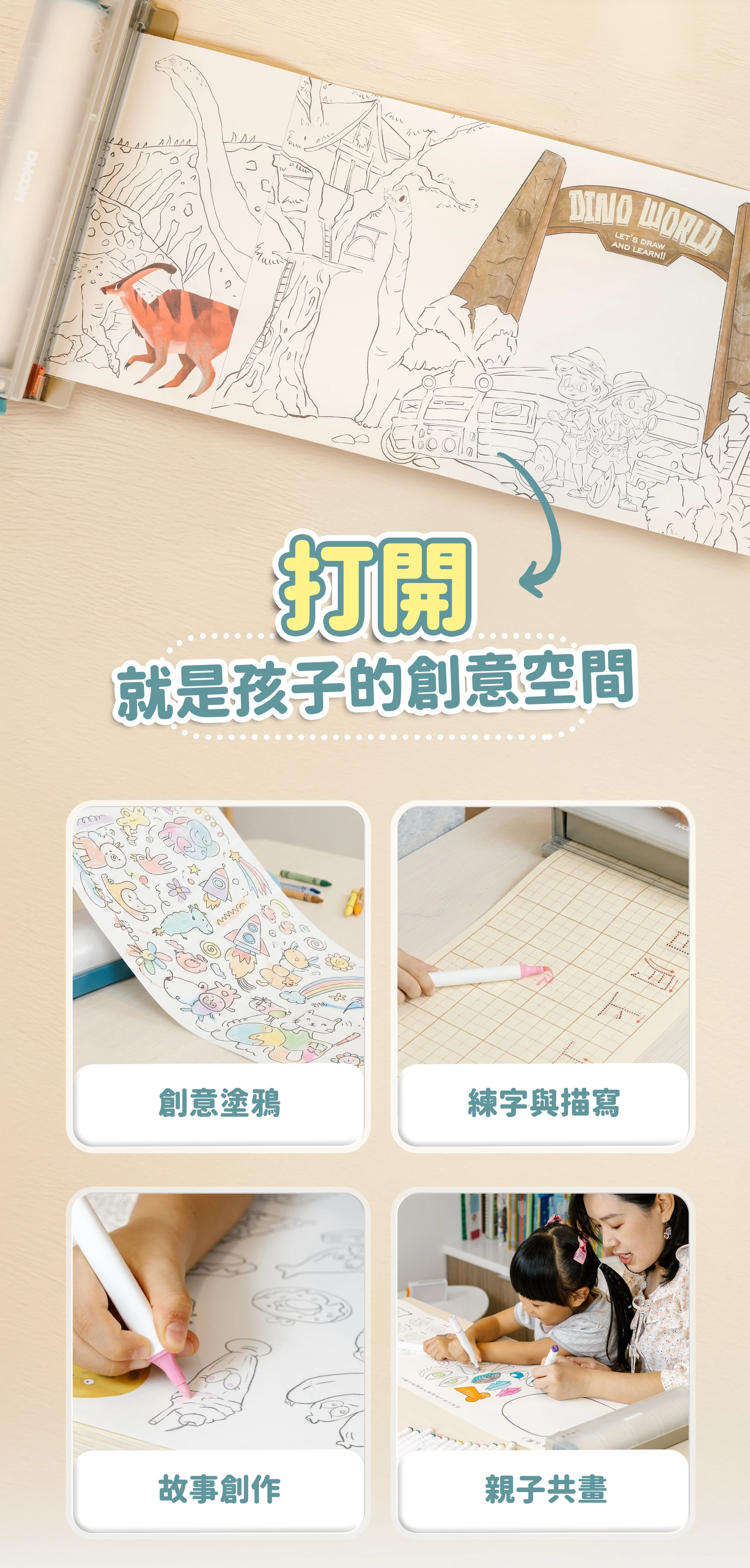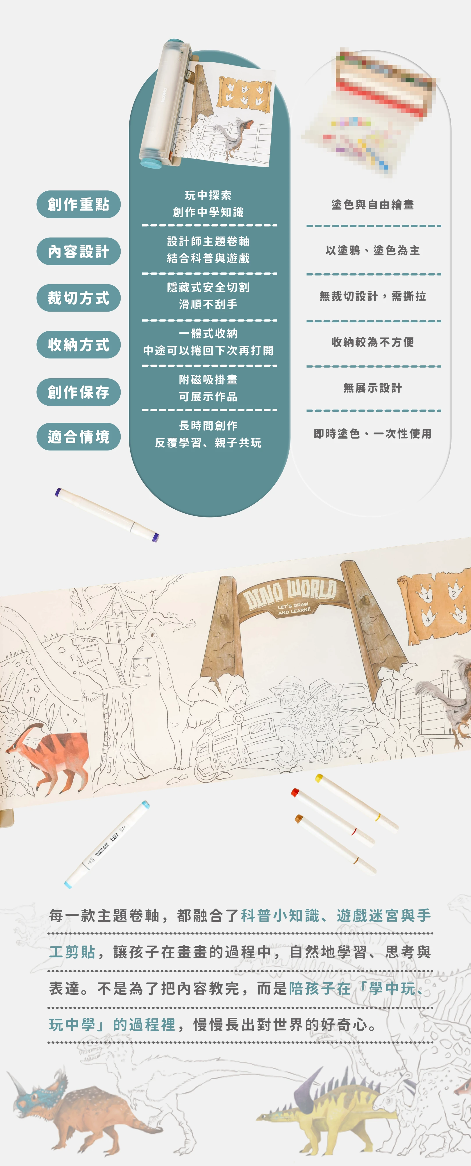 - ◆以「玩中探索、創作中學習」為核心,讓孩子在畫畫的過程中,自然學習、思考與表達