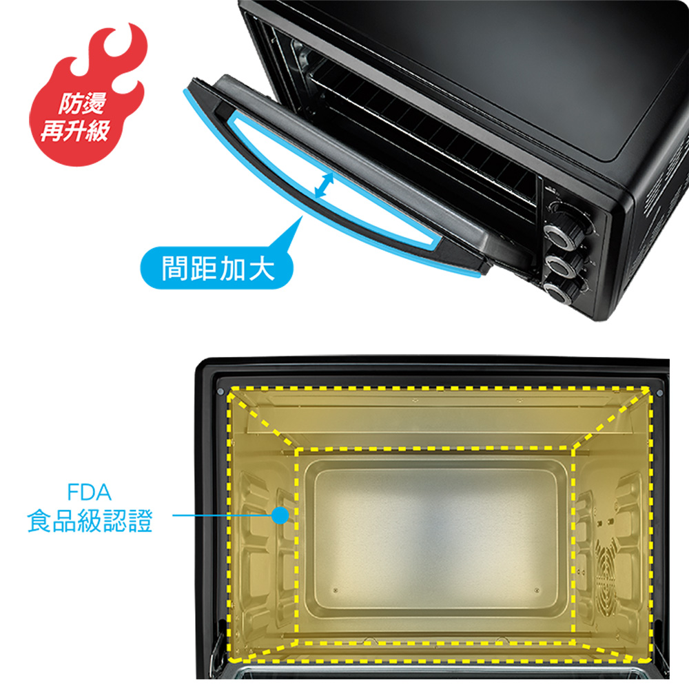 火力模式:上火炙燒/下火慢焙/全開烘烤/上火+旋風/全開+旋風