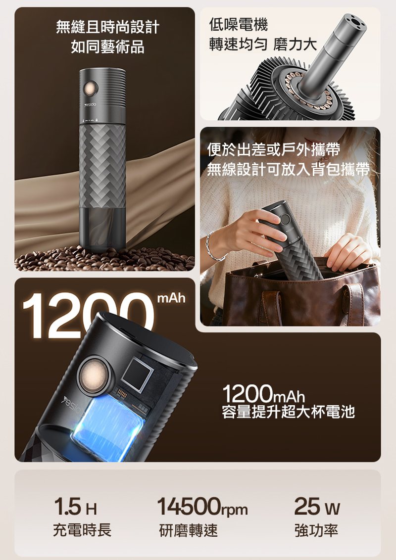 yesido EC29 電動咖啡研磨機 隨身攜帶 低噪音 輕巧迷你◉80D030