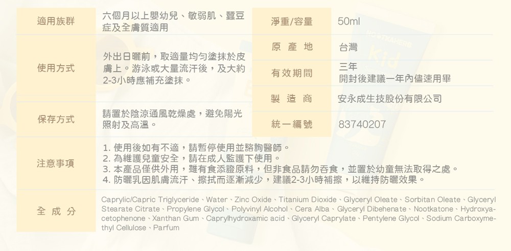 我們的防曬乳是專為敏弱肌與寶寶設計,成分單純,不額外添加乳化劑與防腐劑,更溫和安心。