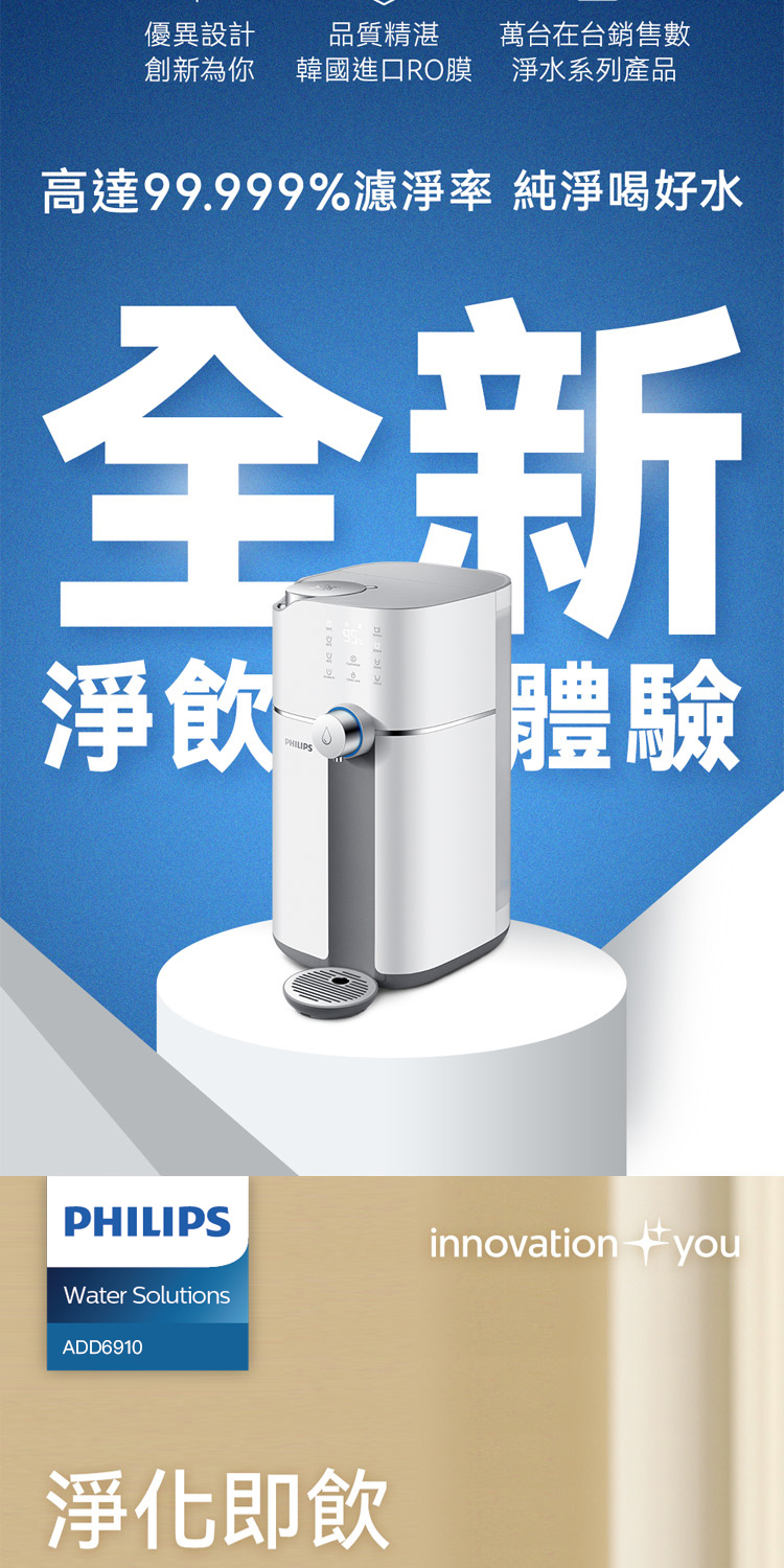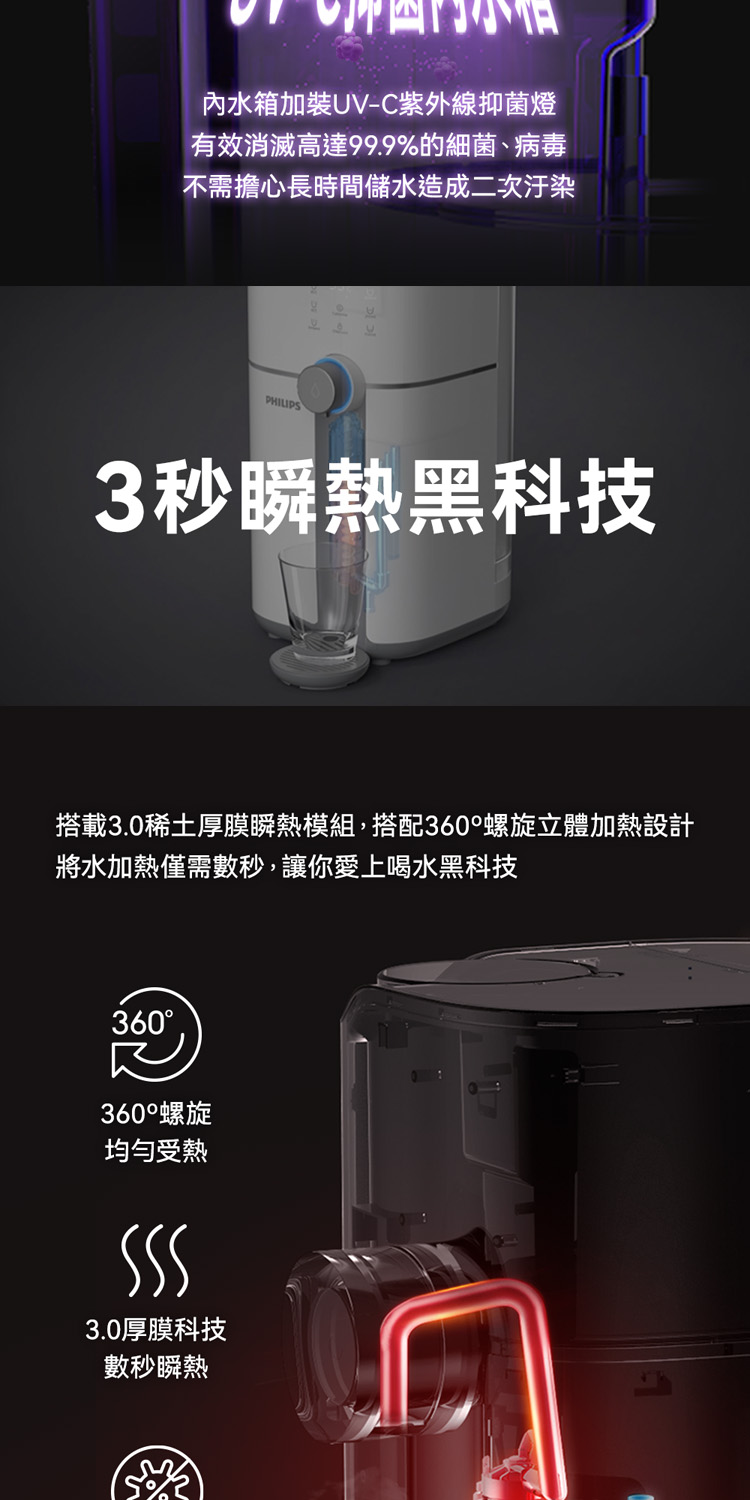 【限量5組,贈專用濾芯ADD550*2組+飛利浦淨水壺】Philips 飛利浦 智能雙效UV-C滅菌/RO濾淨瞬熱飲水機(黑) ADD6910M-BK★80B010