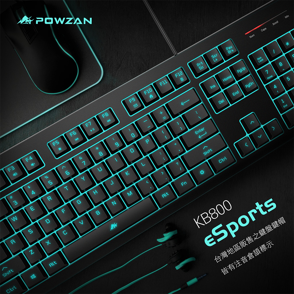 POWZAN KB800 有線發光剪刀腳鍵盤 注音 靜音 七色背光 高鍵帽 19鍵防鬼鍵✿80B032